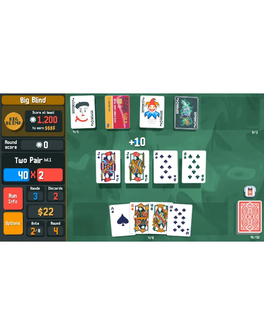 Покерная игра-«рогалик». Balatro — гипнотически увлекательная игра с построением колод, где можно использовать нестандартные покерные комбинации, находить джокеров в решающие моменты и запускать забойные, возмутительно мощные комбо.