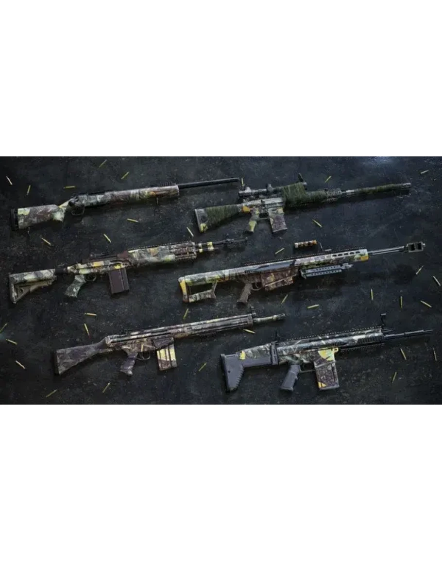 Подкрадитесь к своей жертве с вариантами раскраски оружия Hunter. Эти раскраски можно применить к шести видам оружия.