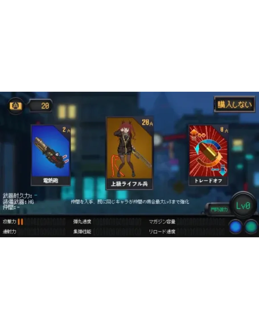 A high-tempo shooting game with simple controls! Upgrade your character with cards and defend the gates from your enemies.