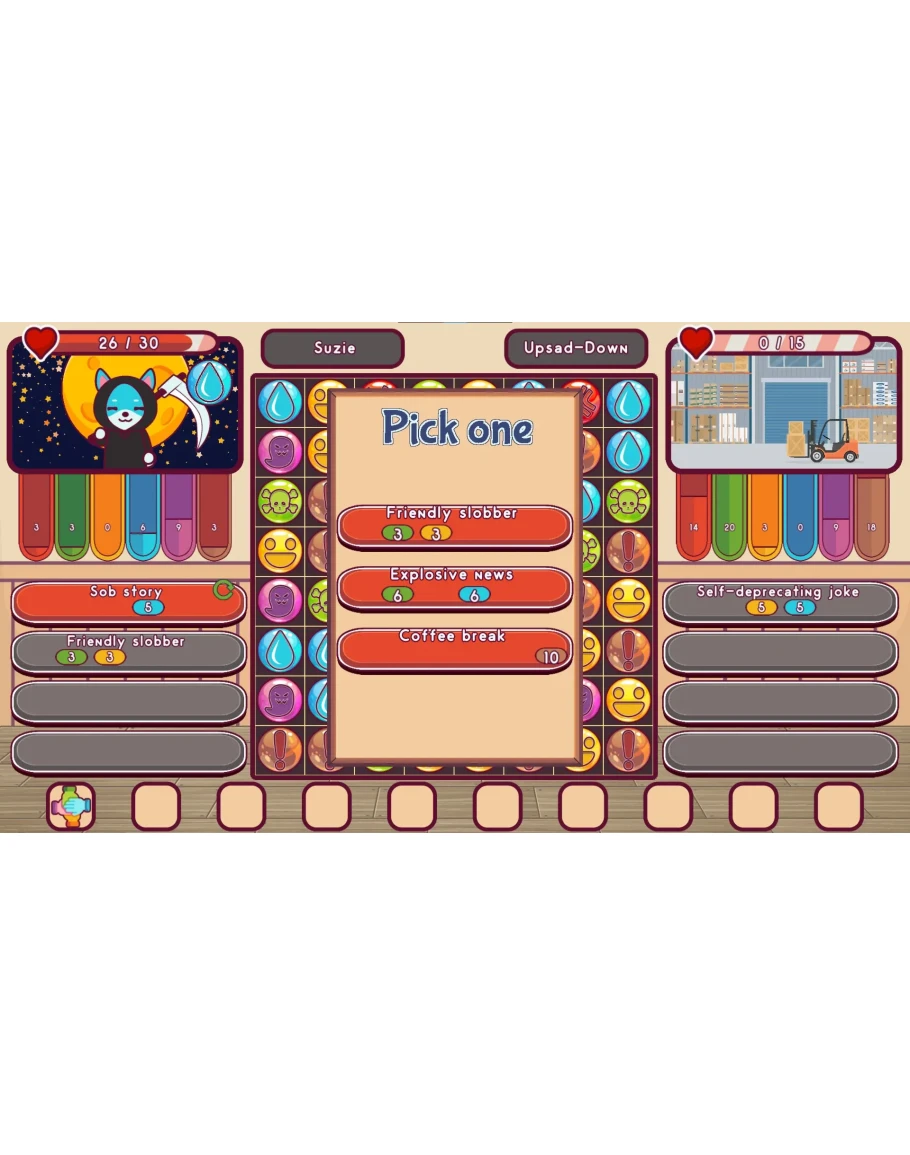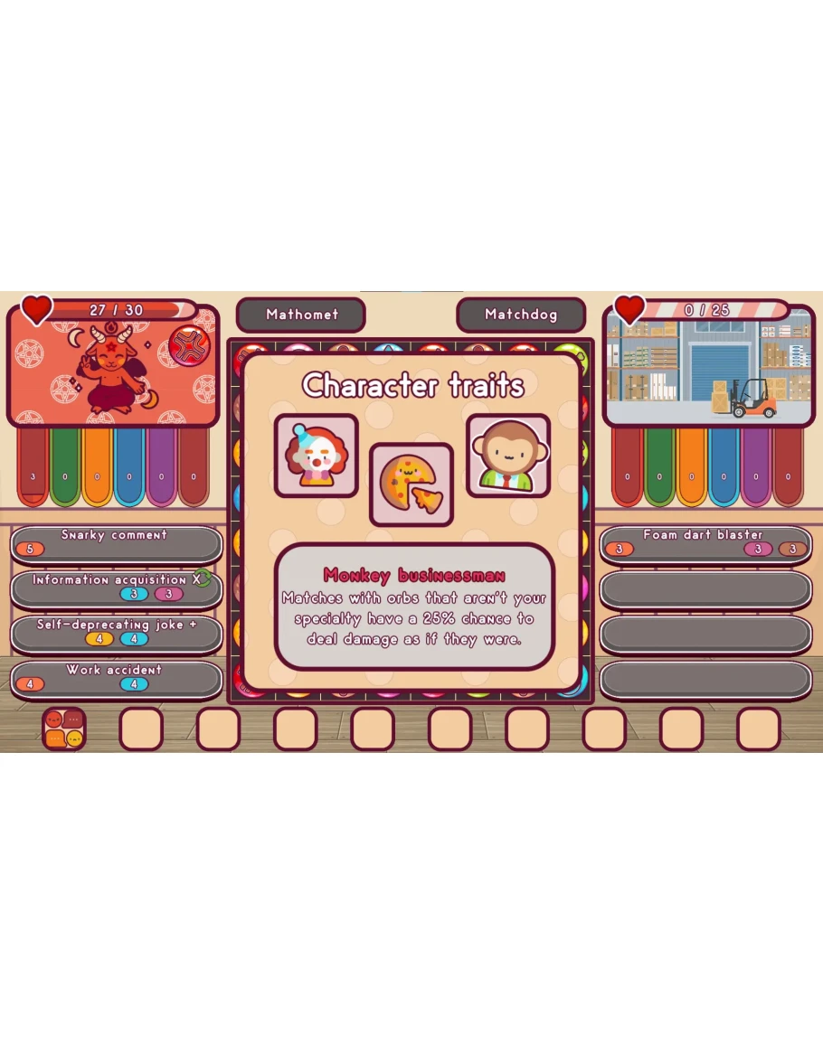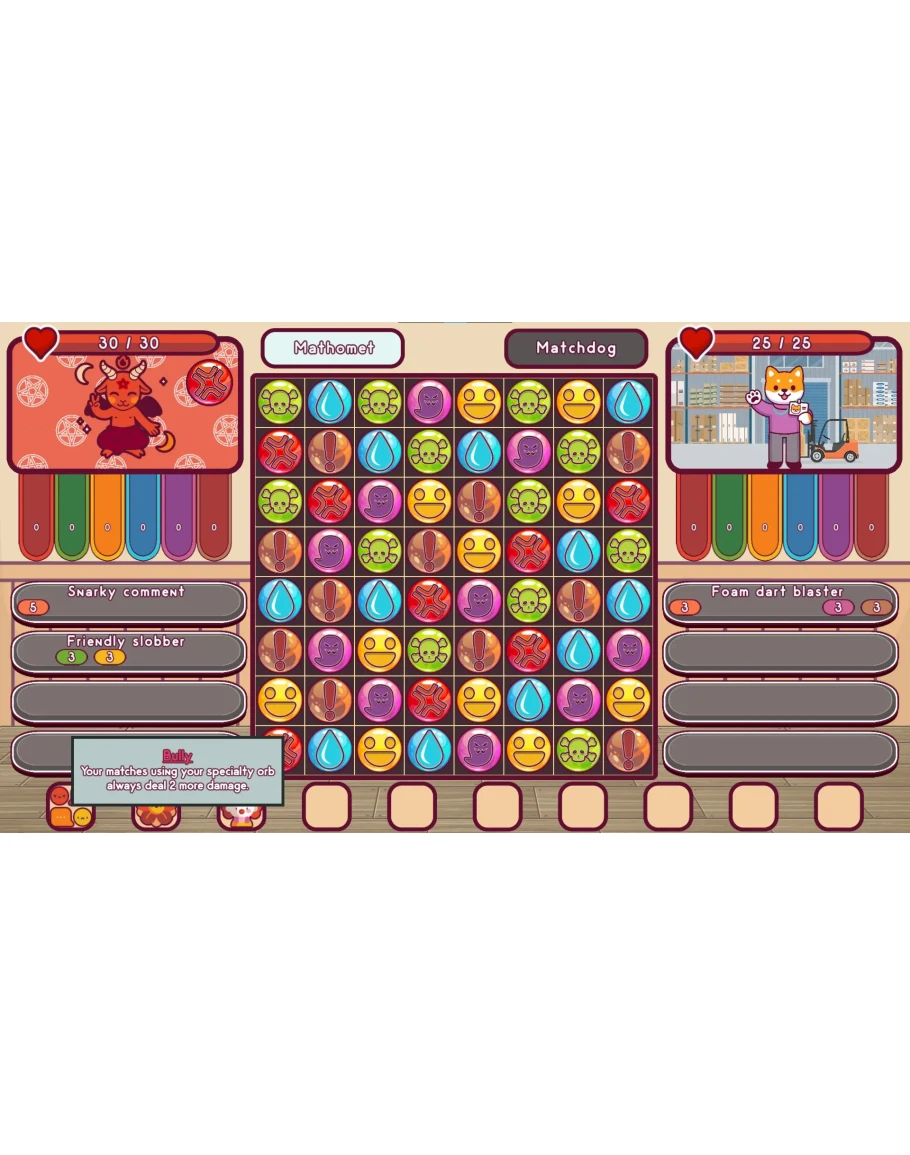 Fight with your colleagues to ascend through the MatchR company in this Match-3, RPG and Roguelike mix! Choose, upgrade and use your skills to emerge victorious! Gain new character traits during your runs which will drastically change the way you plan your matches! Also... Sticker collection!