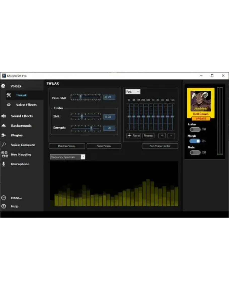 MorphVOX Pro will change your voice online and in-game. Take your voice-changing to a new level with superior voice-learning technology, background cancellation, and sound quality.