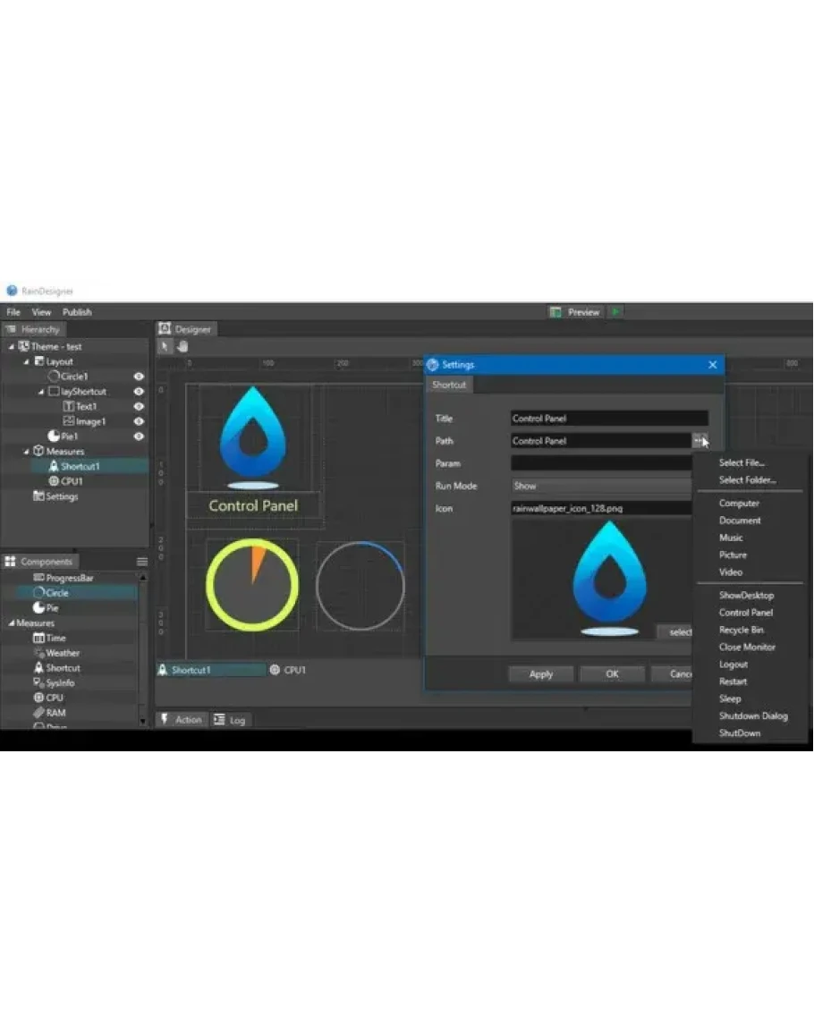 RainWallpaper - это мощный настраиваемый движок живых обоев, который позволяет легко создавать обои, содержащие видео, веб-страницы, часы, погоду, текст, изображения и т. Д. С помощью встроенного визуального дизайнера WYSIWYG с минимальным использованием ЦП и ОЗУ. Вы ограничены только вашей фантазией и творчеством.
