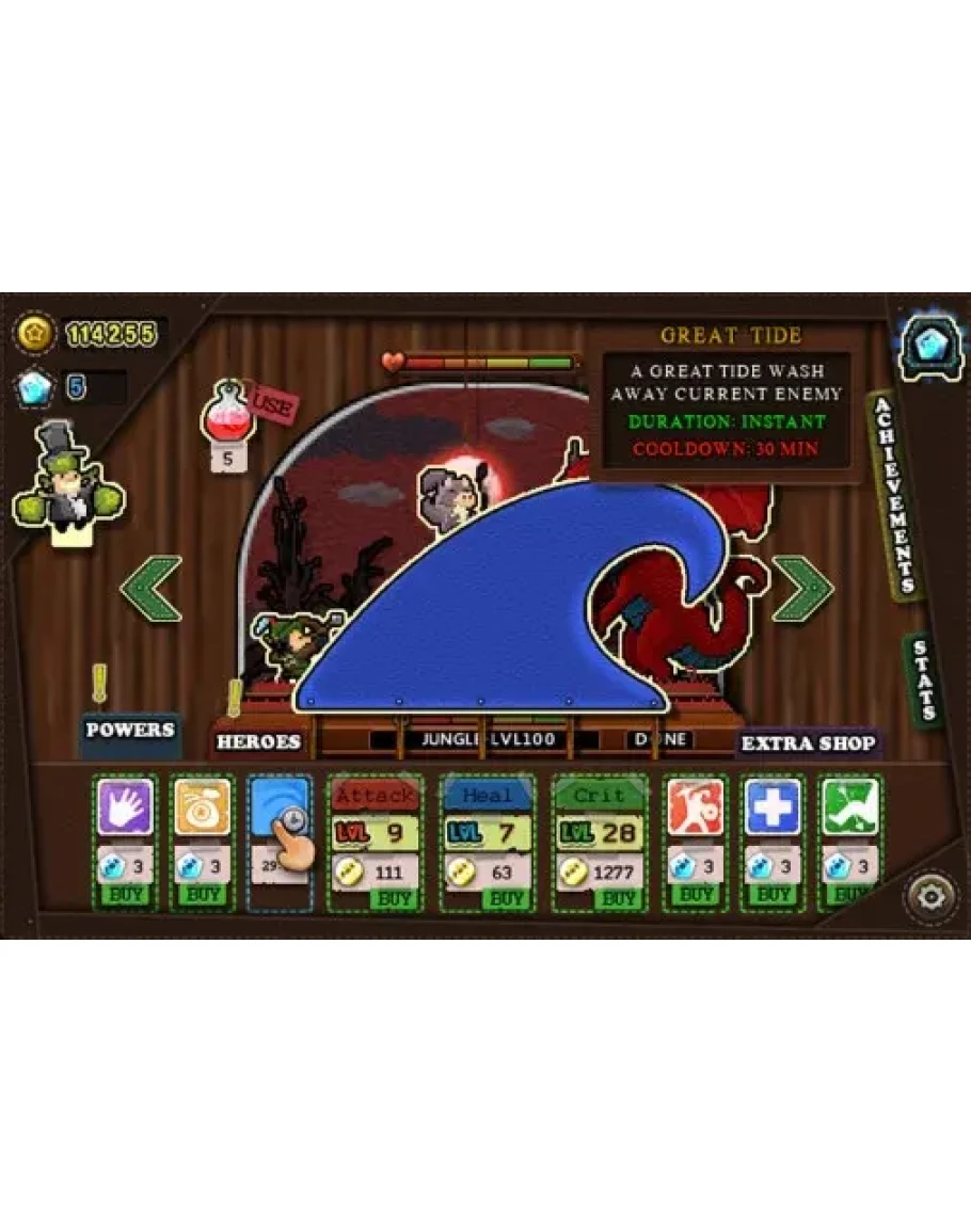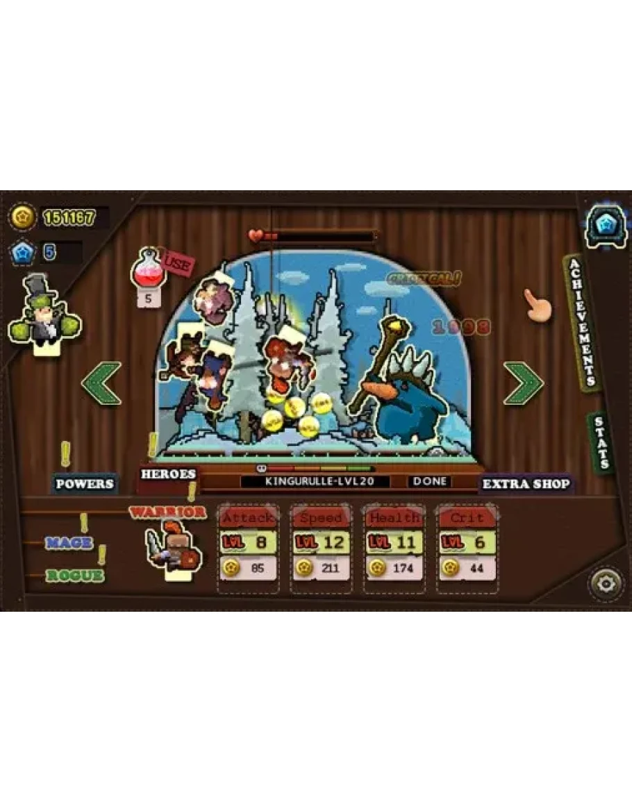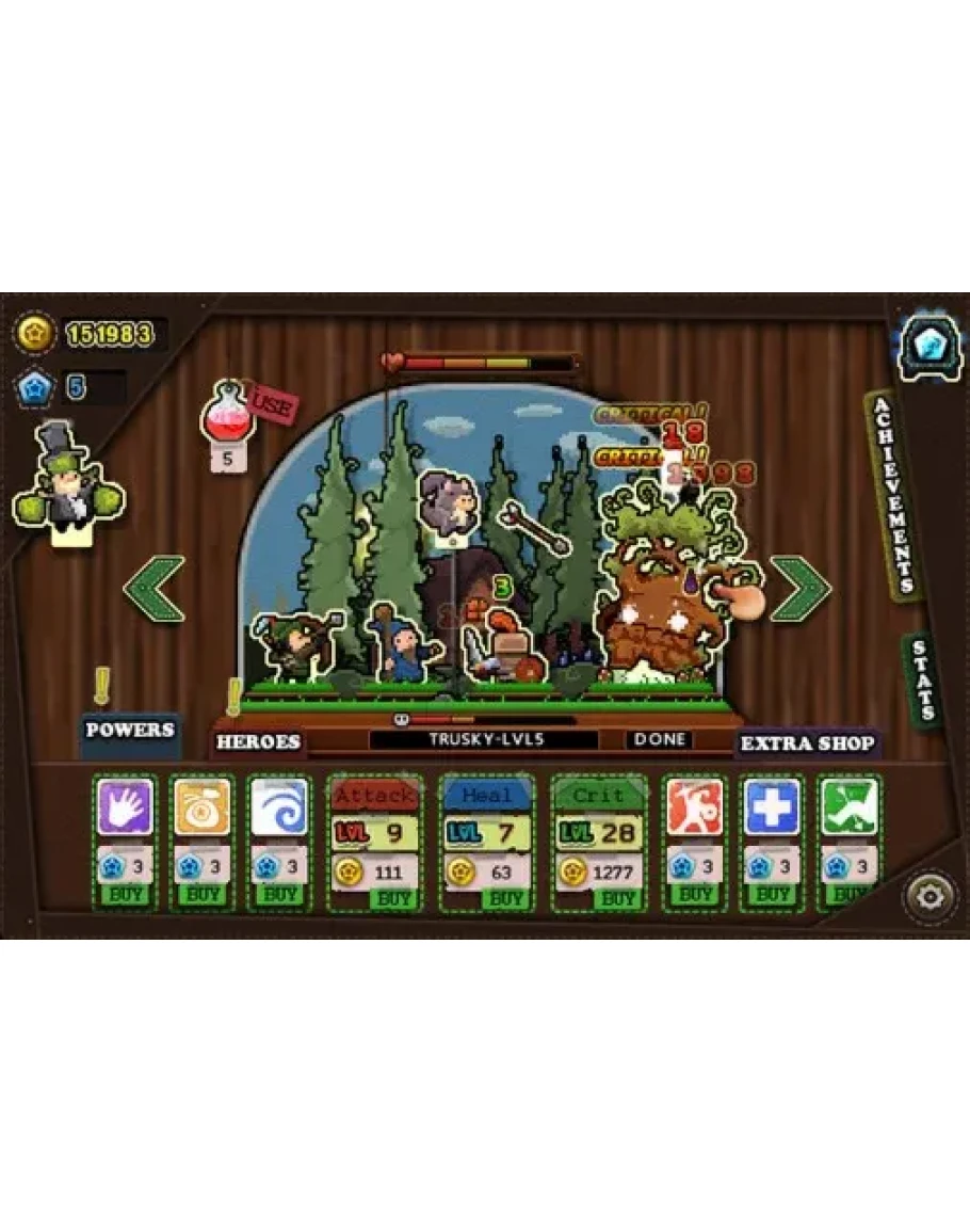 Приветствуем в первой ролевой игре в виде кукольного театра! Побеждайте разных врагов, покупайте улучшения, используйте магию и нанимайте новых героев. Или усаживайтесь поудобнее и наслаждайтесь представлением, пока ваши герои сражаются сами по себе.