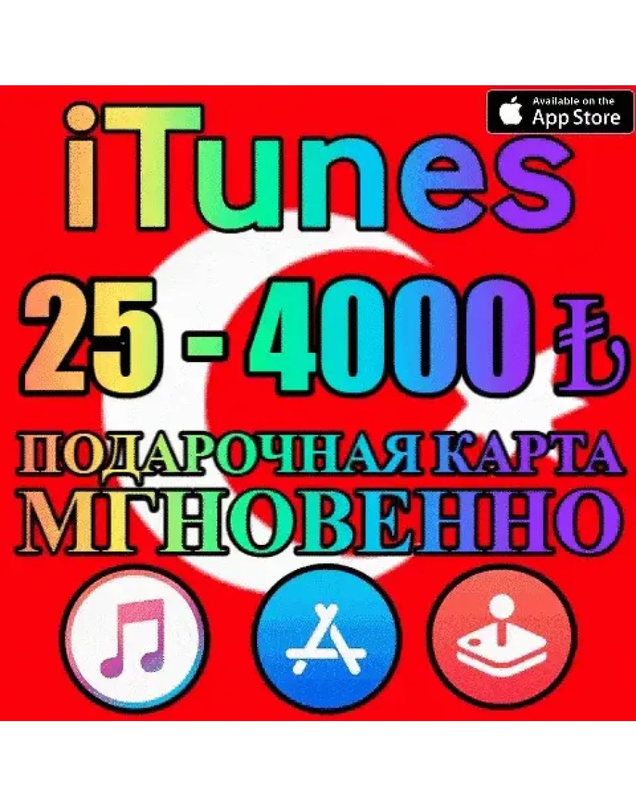 КАРТА iTunes ТУРЦИЯ АВТО 25 - 4000 25 50 75 TL ЛИРА