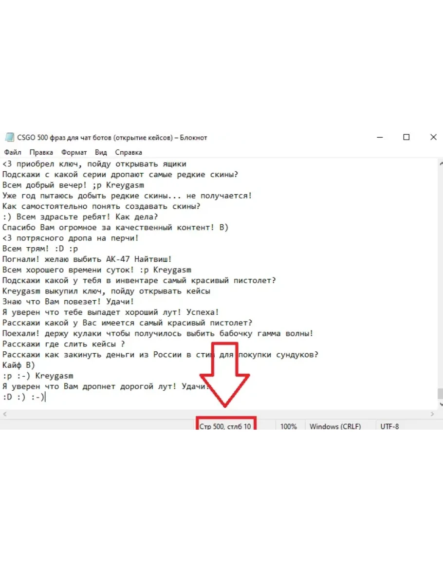 Текстовый файл с фразами (500 фраз на русском без дословных повторений) для чат-ботов имитирующих общение на стриме либо в заданном чате с помощью сервисов и программ в которые загружается данный файл с фразами (товар не содержит софт, а только текстовый файл с фразами которые не повторяются, не имеют привязки к месту, игре, конкретному каналу, стримеру). Файл не содержит дословных повторов фраз!