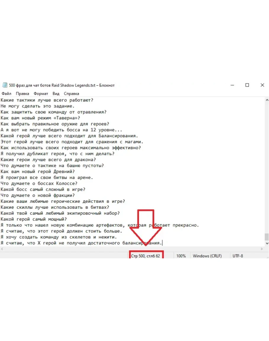 ФАЙЛ ТХТ с фразами по игре Raid Shadow Legends