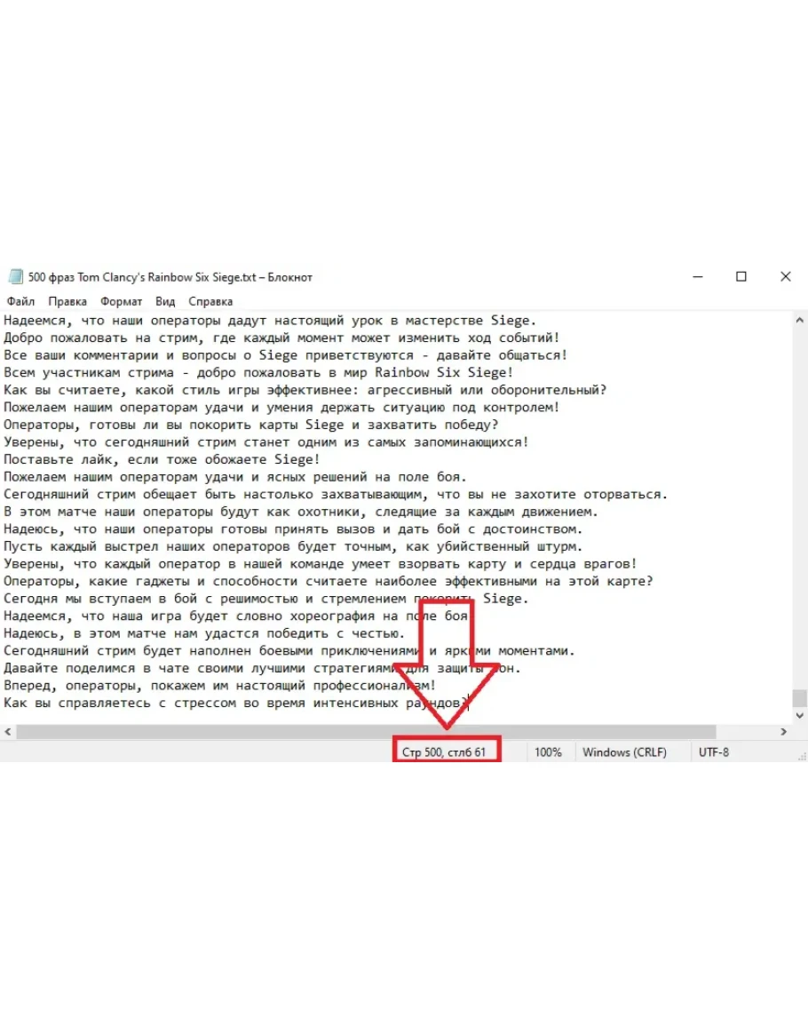 Текстовый файл с фразами (500 фраз на русском языке без дословных повторений) для чат-ботов имитирующих общение на стриме либо в заданном чате с помощью сервисов и программ в которые загружается данный файл с фразами (товар не содержит софт, а только текстовый файл с фразами которые не повторяются, не имеют привязки к месту, игре, конкретному каналу, стримеру). Файл не содержит дословных повторов фраз!