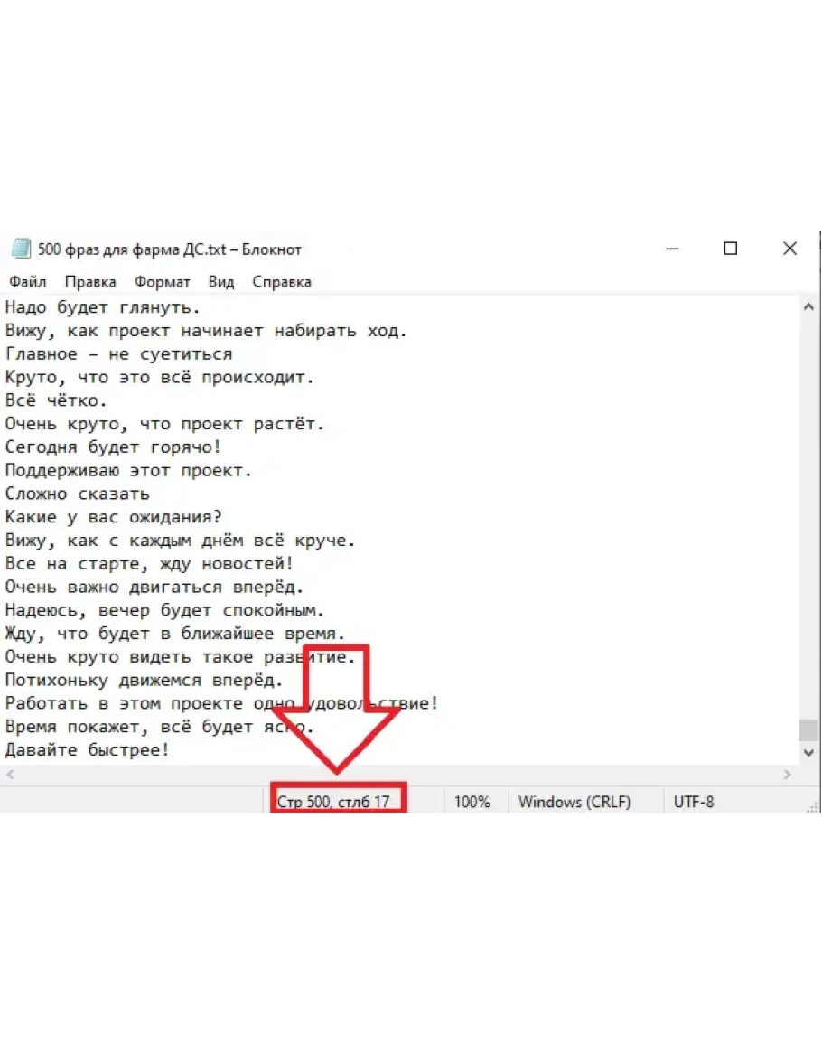 Текстовый файл с фразами (500 фраз на русском для фарма ролей в Дискорде) для чат-ботов имитирующих общение на стриме либо в заданном чате с помощью сервисов и программ в которые загружается данный файл с фразами (товар не содержит софт, а только текстовый файл с фразами которые не повторяются, не имеют привязки к месту, конкретному каналу, стримеру) Файл не содержит дословных повторов фраз!