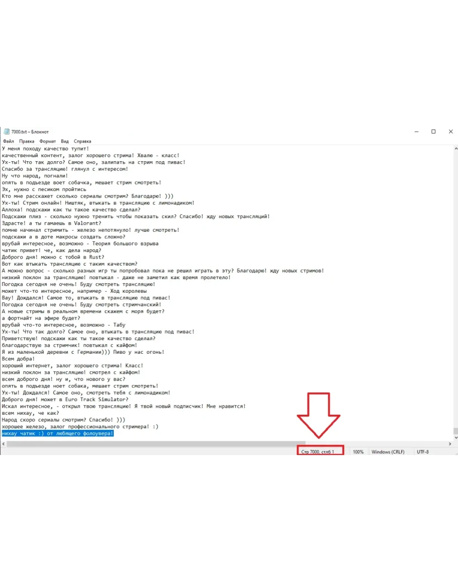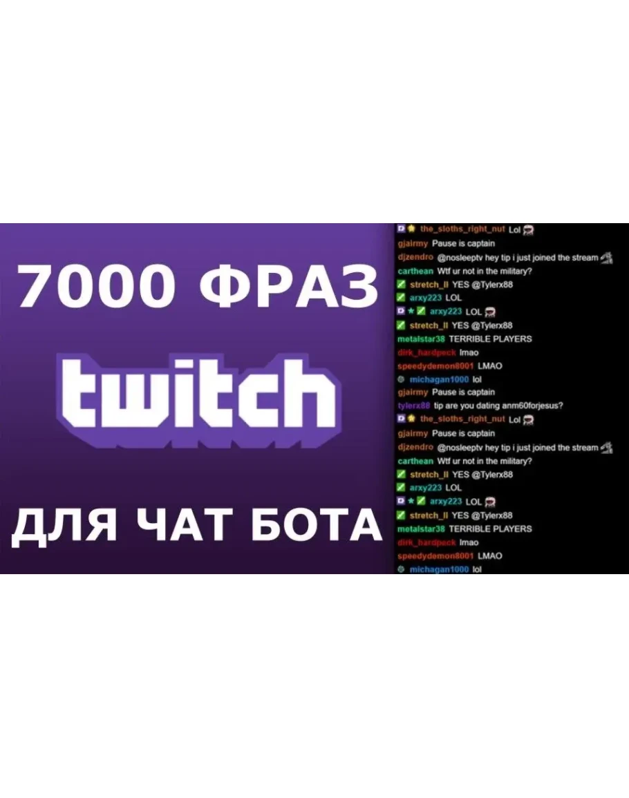 Текстовый файл с фразами (7000 фраз на русском) для чат-ботов имитирующих общение на стриме либо в заданном чате с помощью сервисов и программ в которые загружается данный файл с фразами (товар не содержит софт, а только текстовый файл с фразами которые не повторяются, не имеют привязки к месту, игре, конкретному каналу, стримеру) Файл не содержит дословных повторов фраз!
