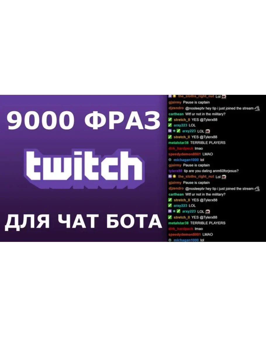 Текстовый файл с фразами (9000 фраз на русском) для чат-ботов имитирующих общение на стриме либо в заданном чате с помощью сервисов и программ в которые загружается данный файл с фразами (товар не содержит софт, а только текстовый файл с фразами которые не повторяются, не имеют привязки к месту, игре, конкретному каналу, стримеру) Файл не содержит дословных повторов фраз!
