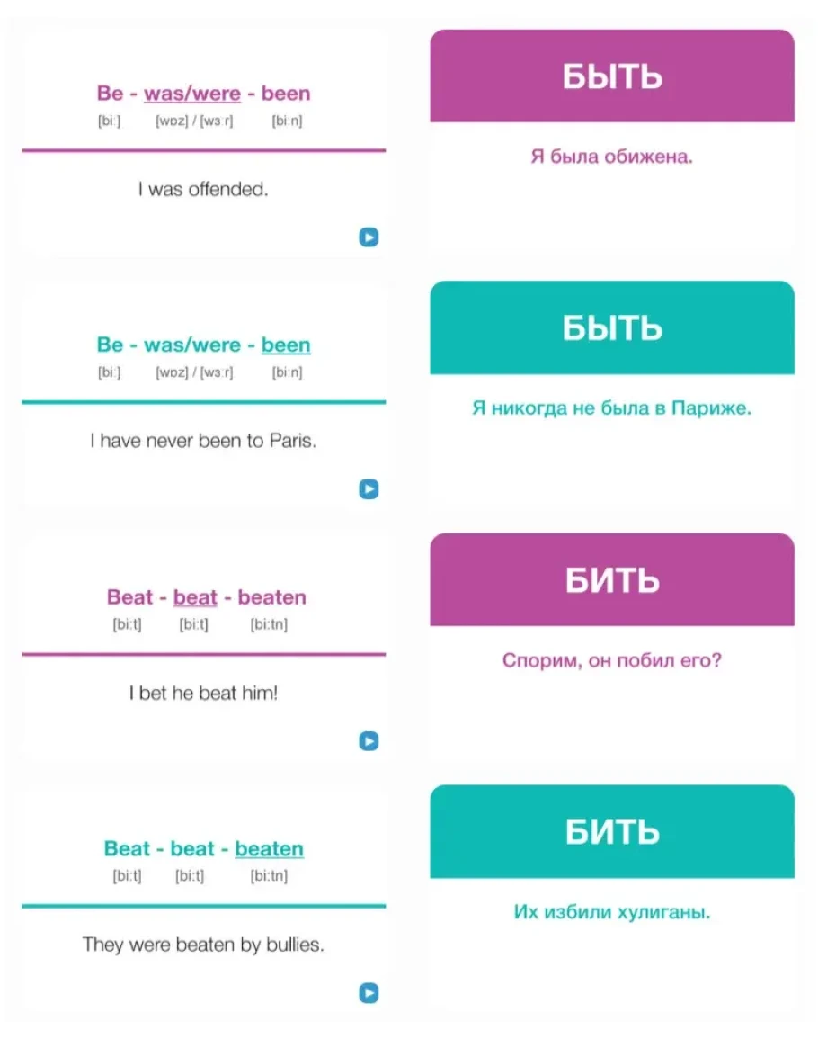 Каждая пара отрабатывает вторую и третью форму глагола