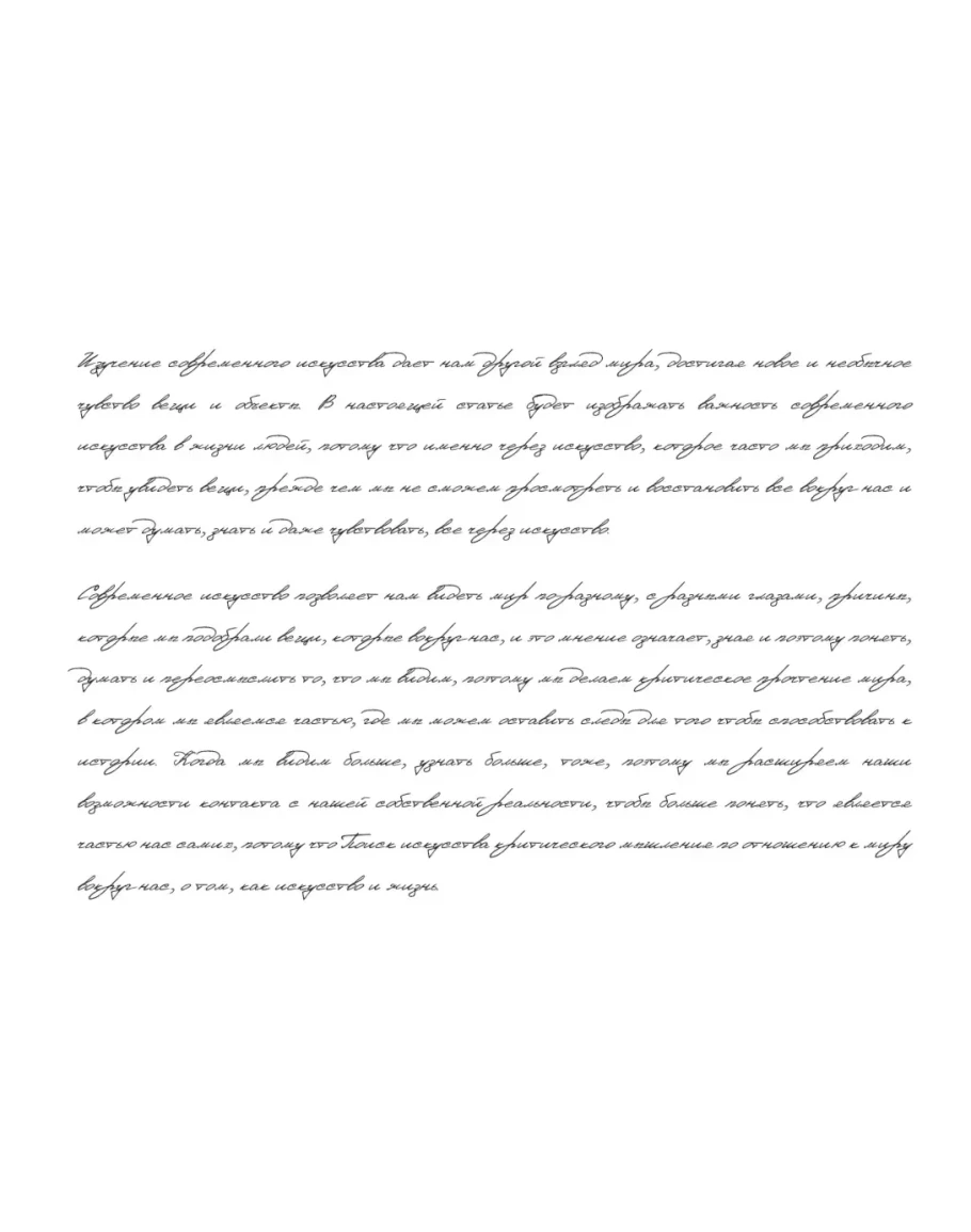 Данный шрифт позволяет быстро, красиво, и качественно восполнить конспекты (либо создать их с нуля) распечатав нужные материалы в обычной тетради. Как это делается смотрите на ютубе (есть инструкции), данный шрифт позволит избежать вам создание его с нуля за смешные деньги и уже через пару минут приступить к печати.