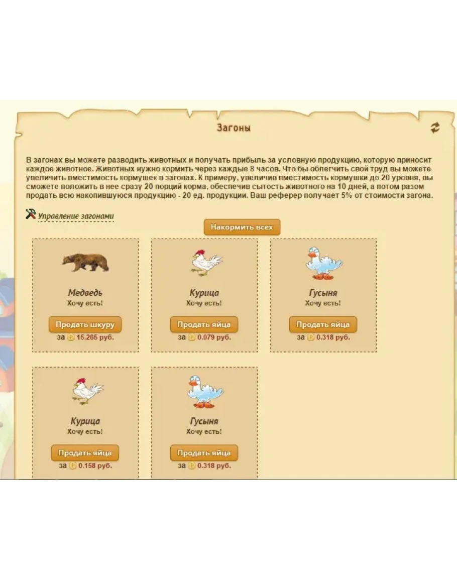 В этой игре есть возможность выращивать не только плоды растений, но и ухаживать за животными и собирать с них продукцию, но перед этим их нужно хорошенько покормить.