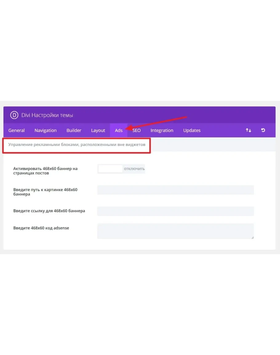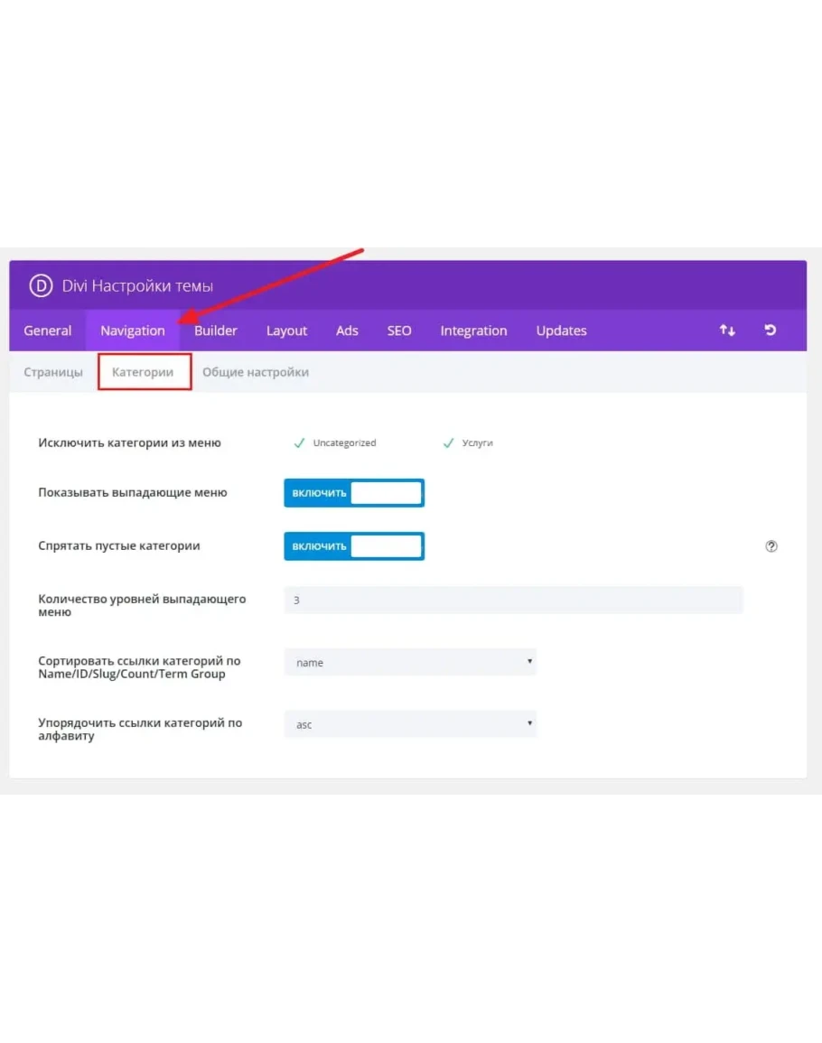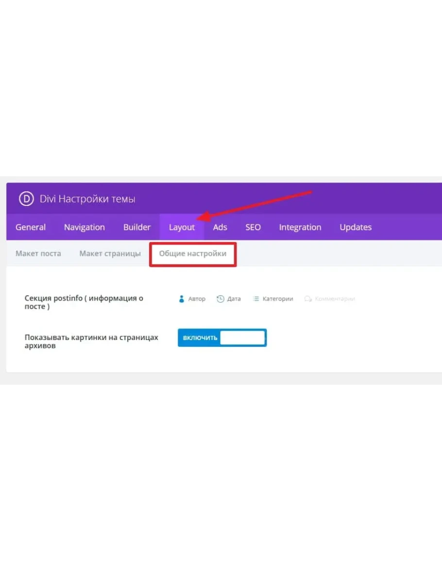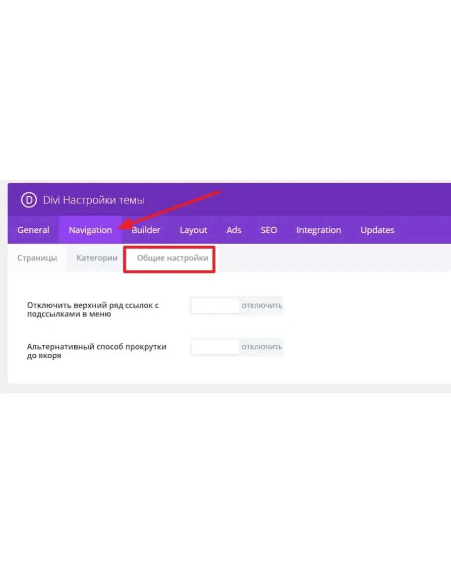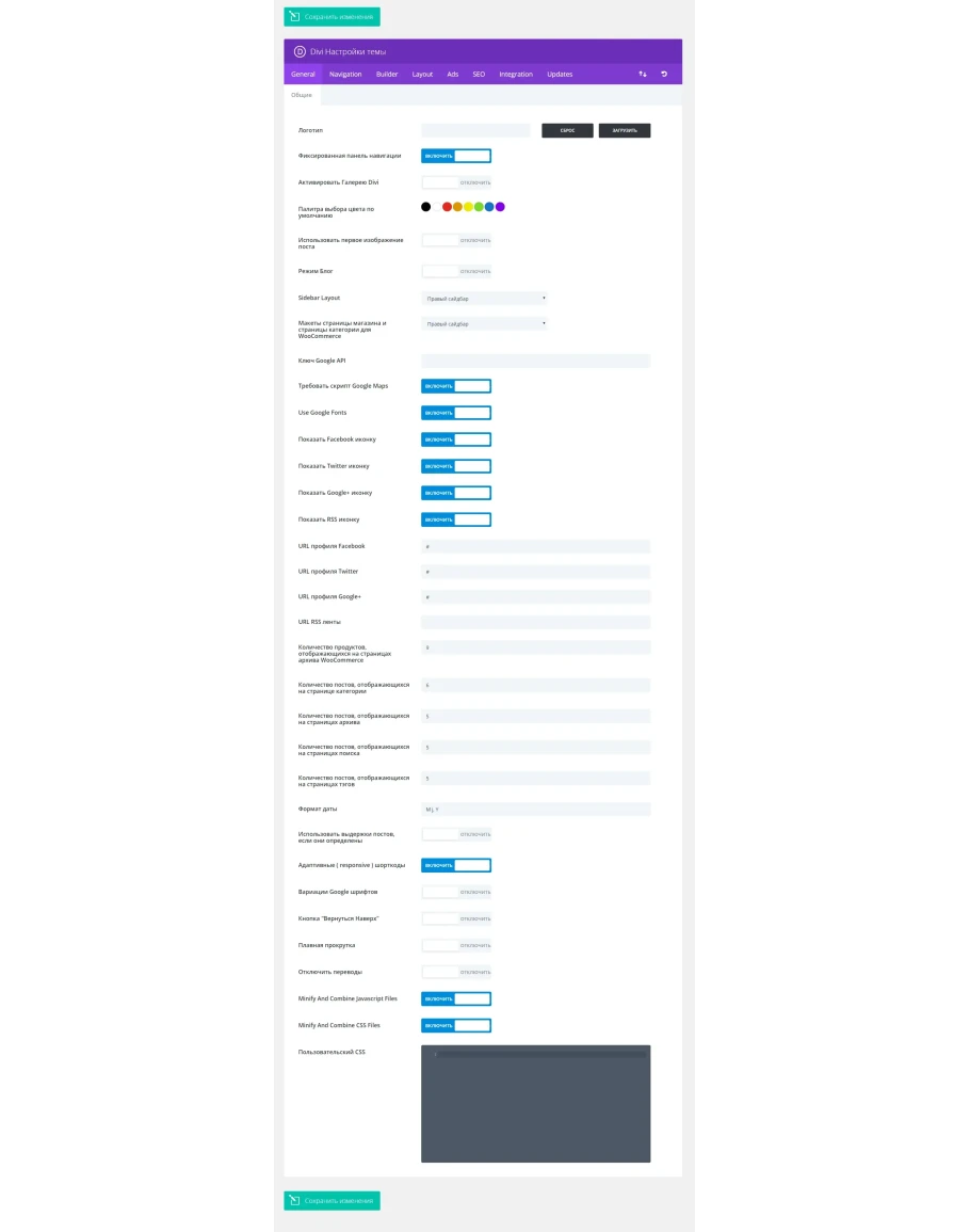 Тема Divi устанавливается с собственной панелью настроек темы.