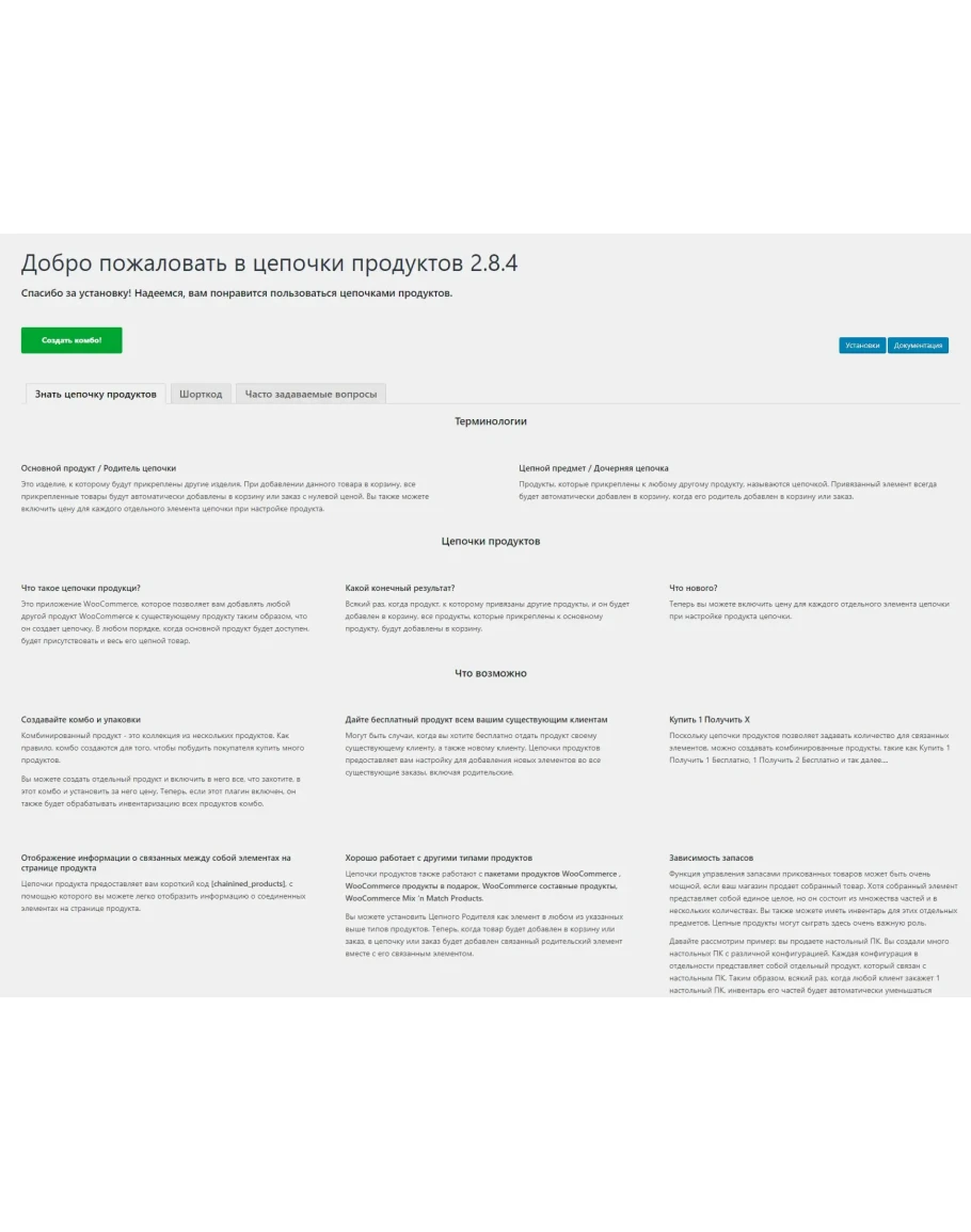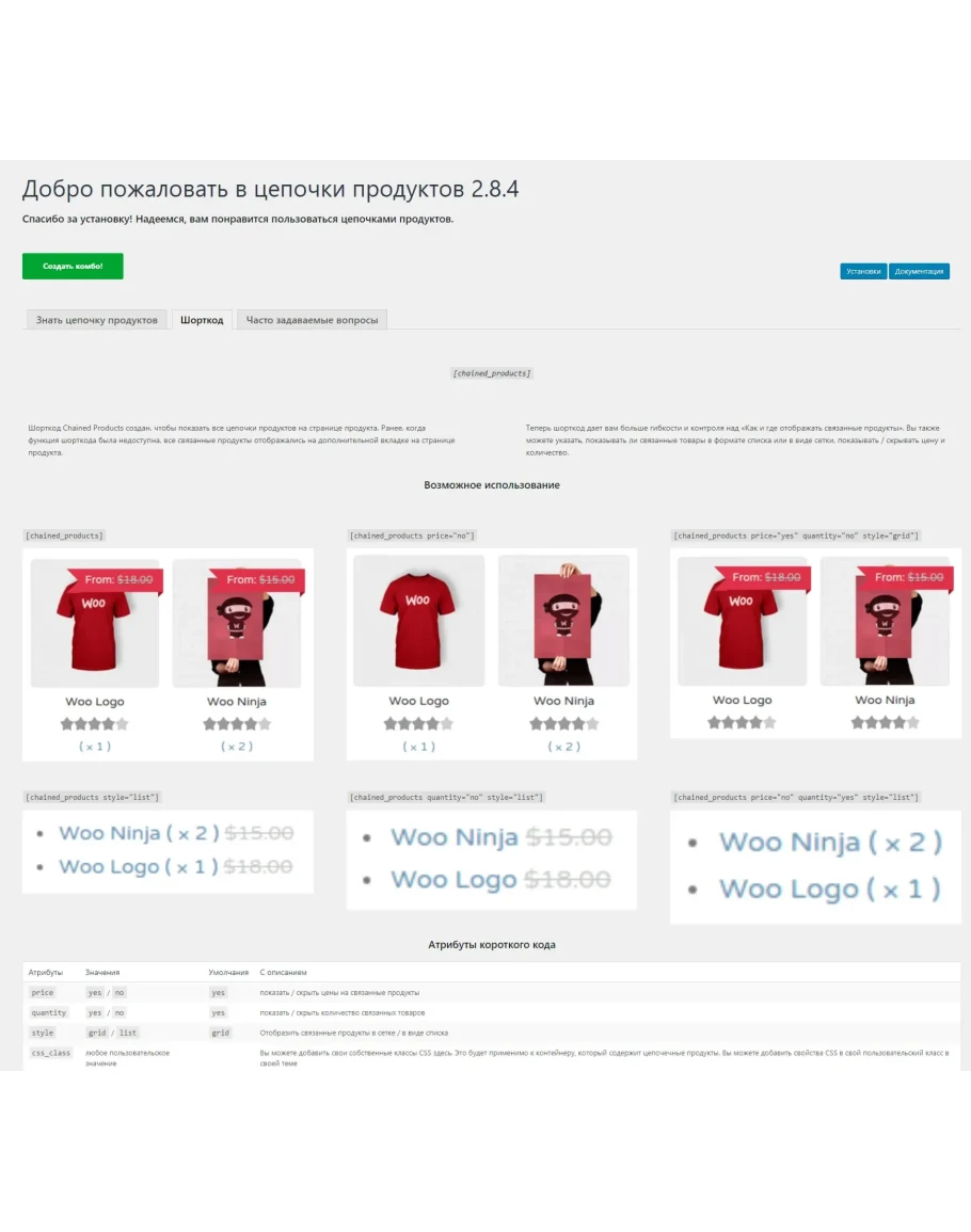 Полное описание плагина находится на сайте разработчика https://woocommerce.com/products/chained-products/