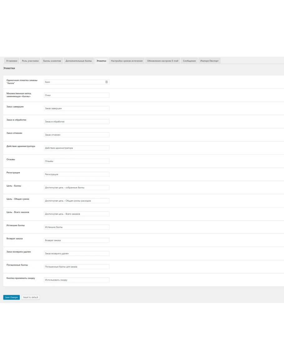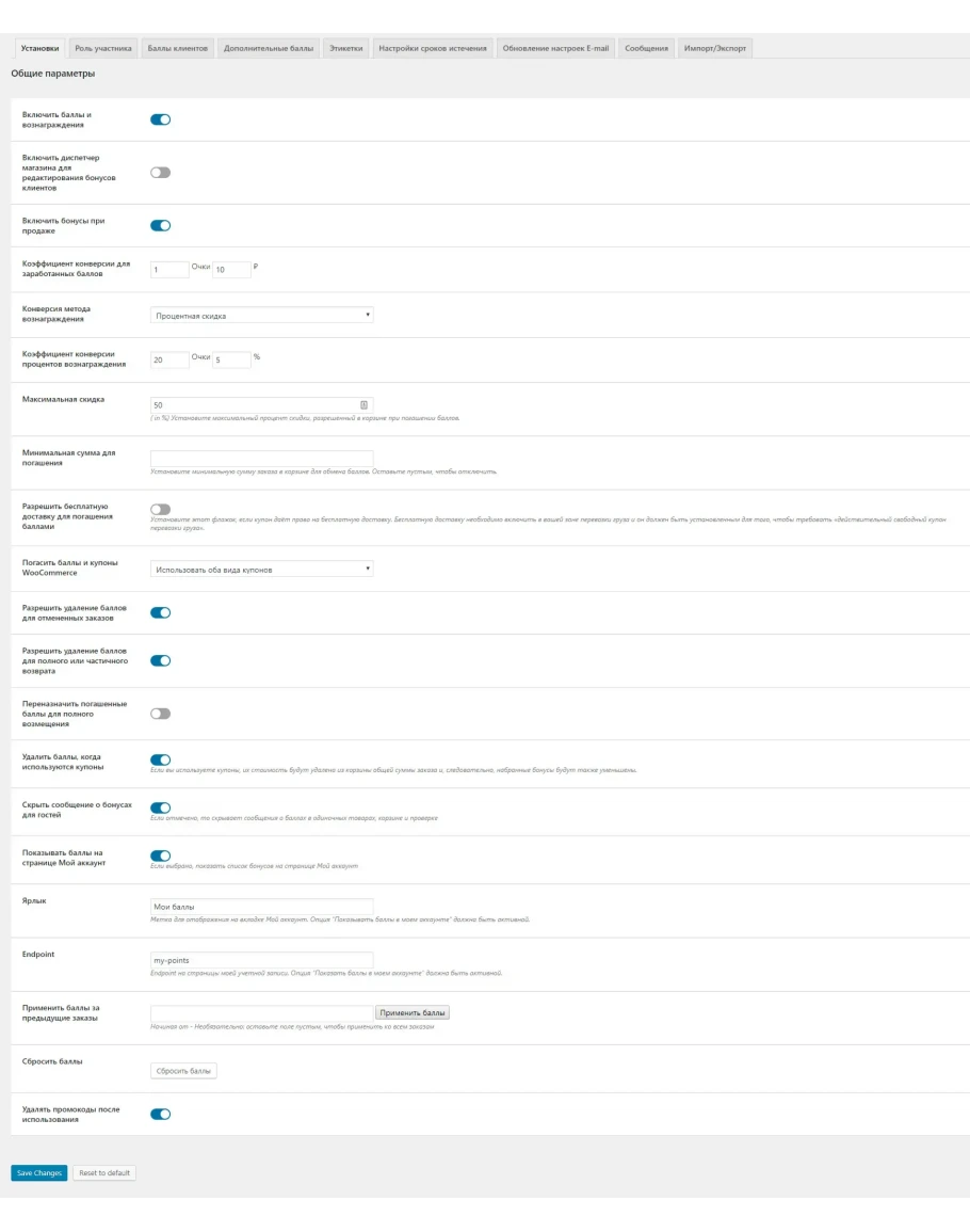 Перевод на русский язык плагина баллы и вознаграждения для вукомерц