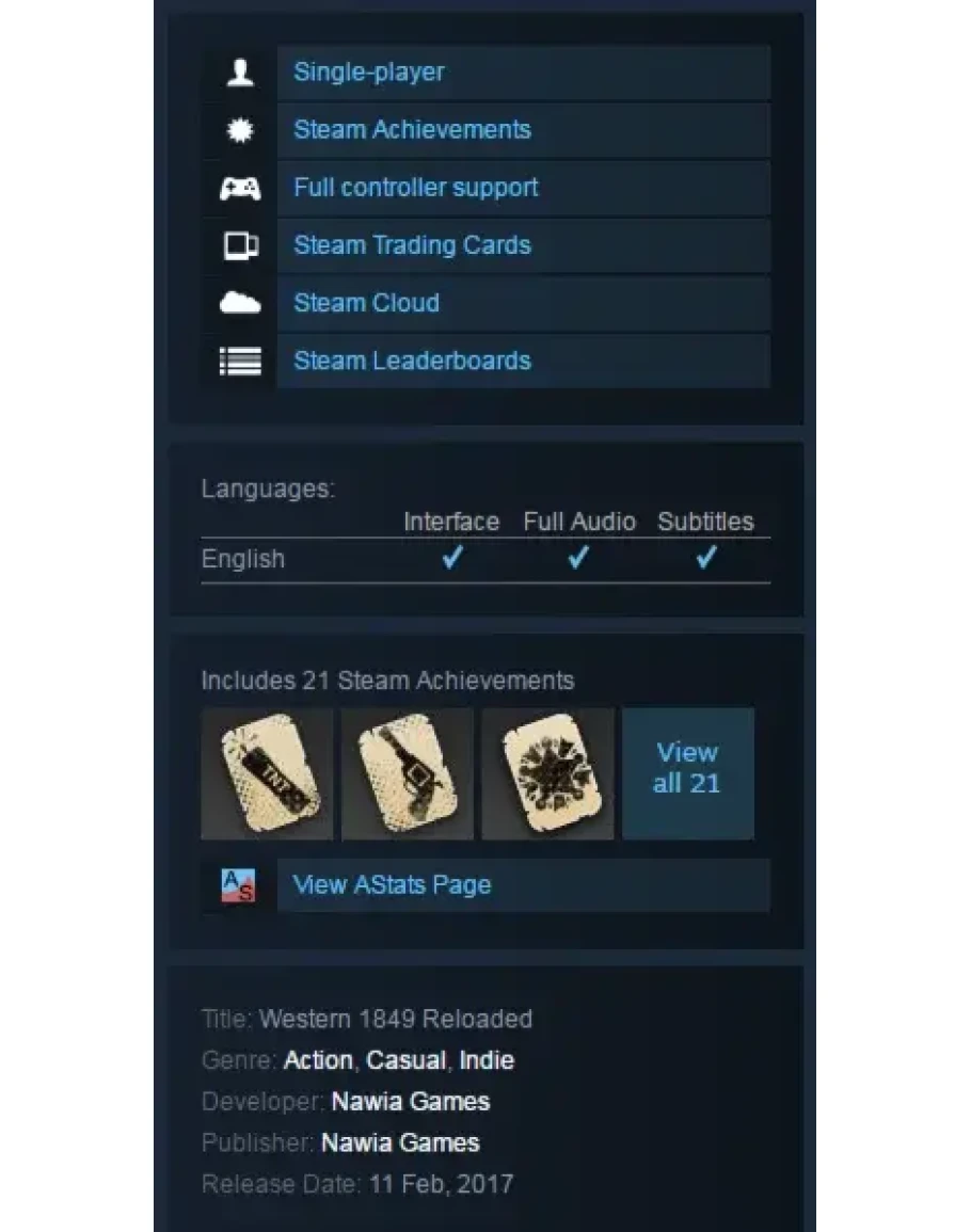 Western 1849 Reloaded (Steam KEY / Region free /Global)