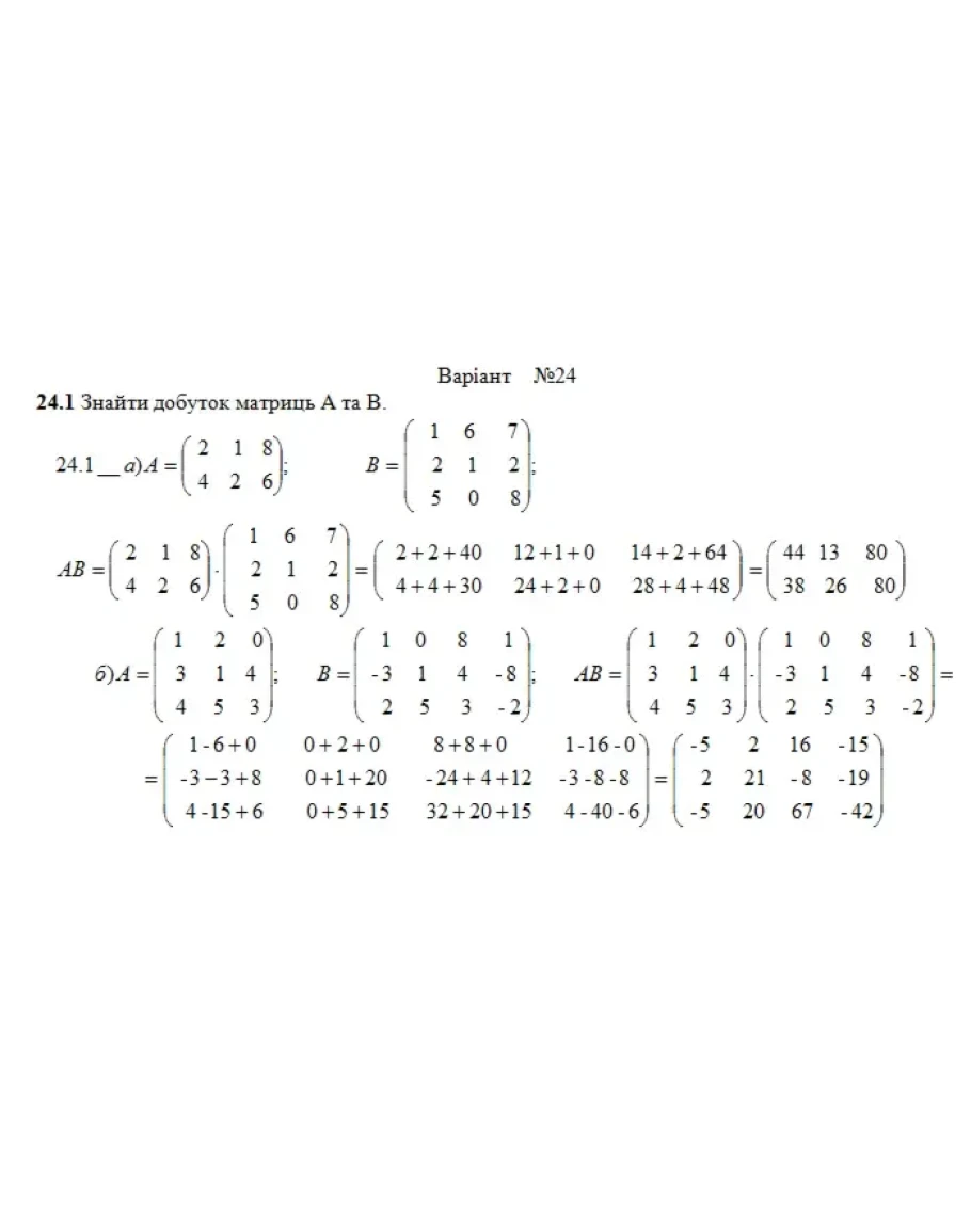 Розрахункова з лнйно алгебри (1-24 завдання) Вар. 24