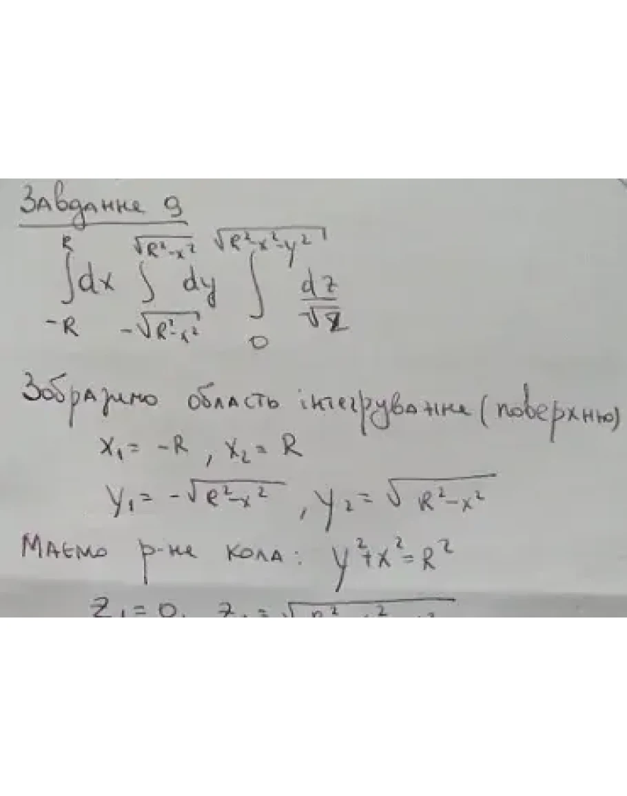 Розв'язана розрахункова робота з математичного аналізу на тему "Кратні інтеграли" НУ ЛП . Приклади розв'язків на зображеннях попереднього перегляду. Варіант 5.