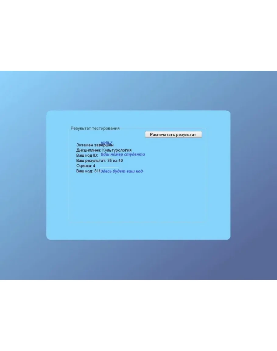 Вопросы в тесте для сверки, в программе Testclient предмет должен называться точно так же как этот: