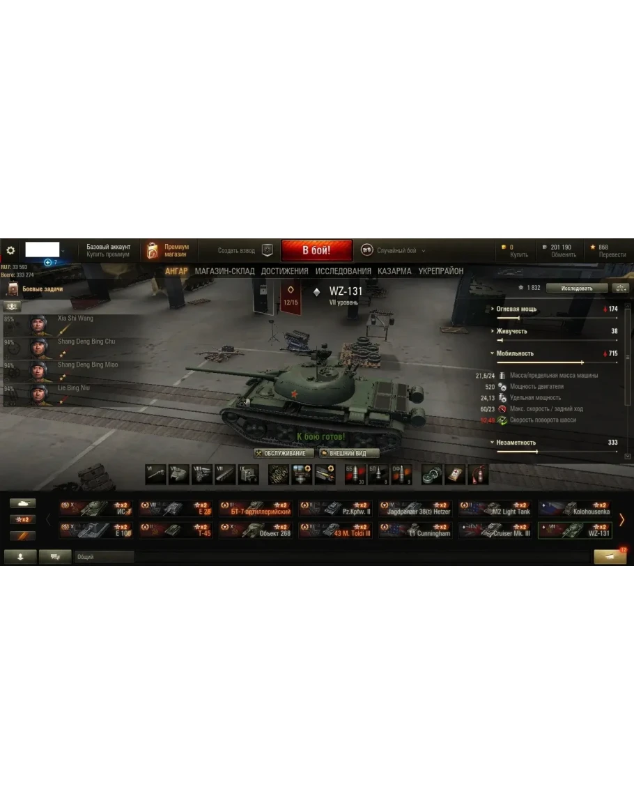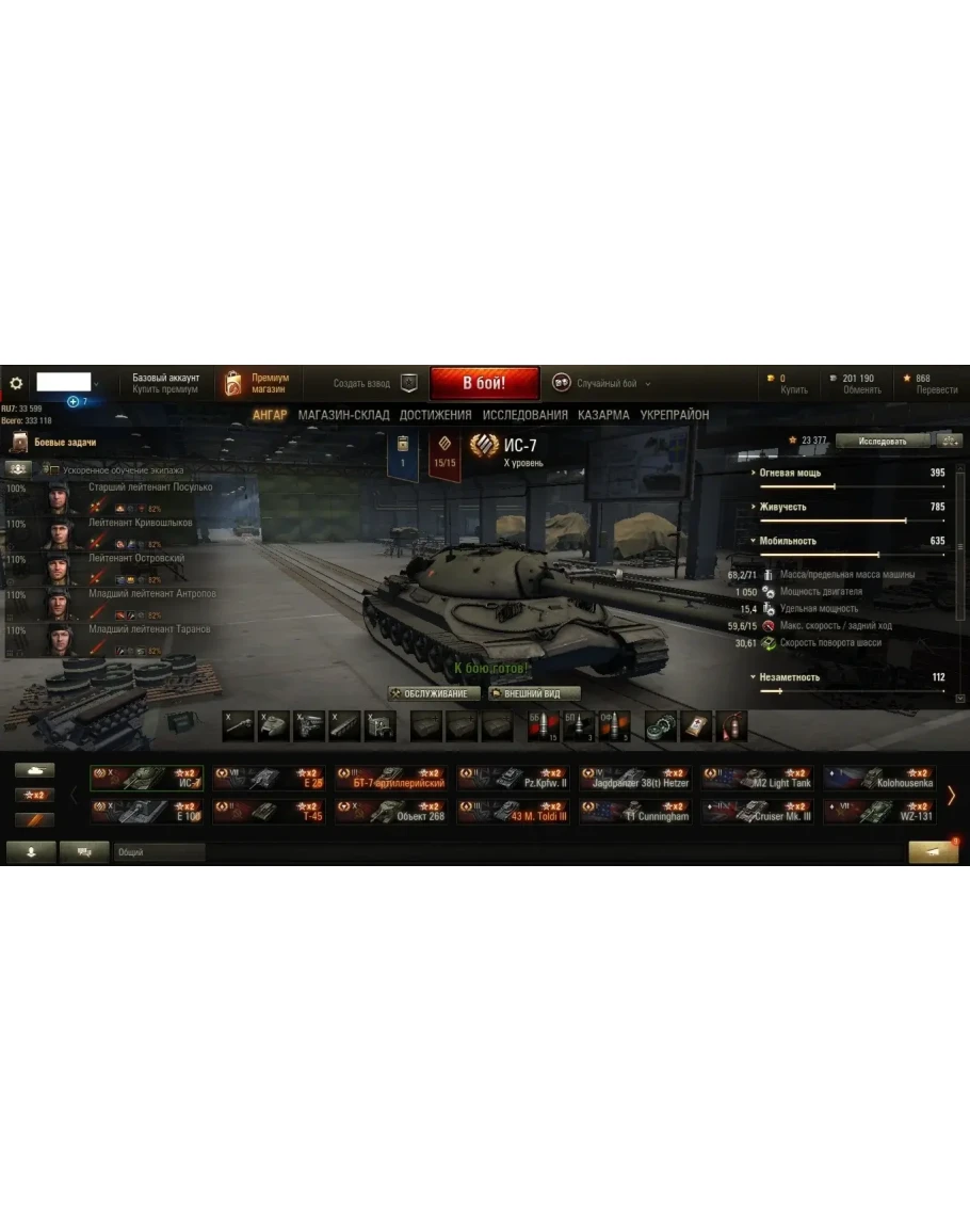 В ангаре: Е 100, ИС 7, Об.268, Е25, Wz 131 и др.