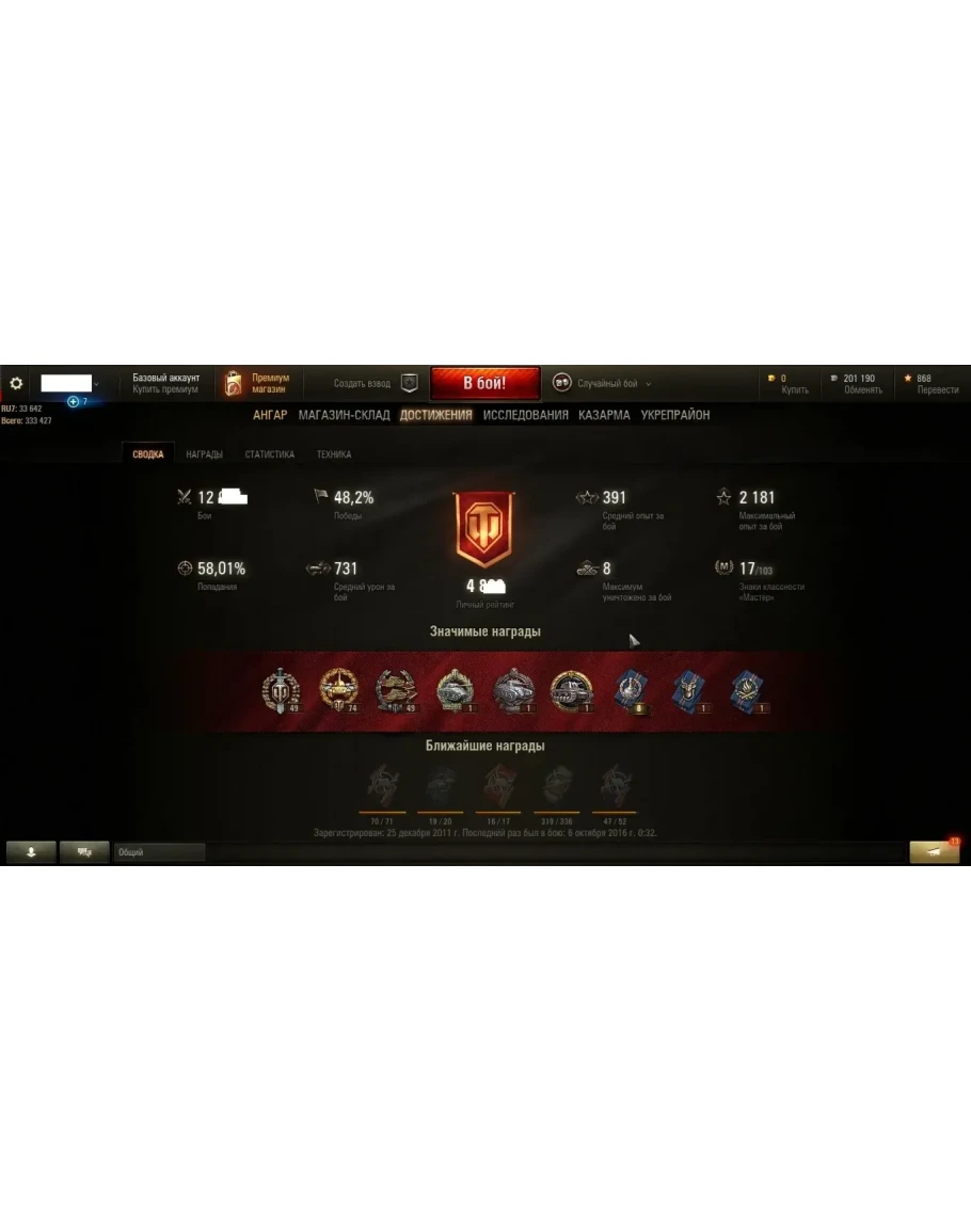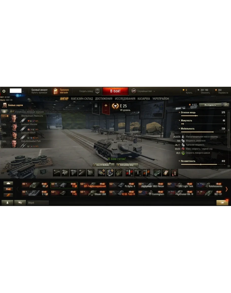 World of Tanks(Wot) Личный аккаунт. 4 ТОПА, Е 25.