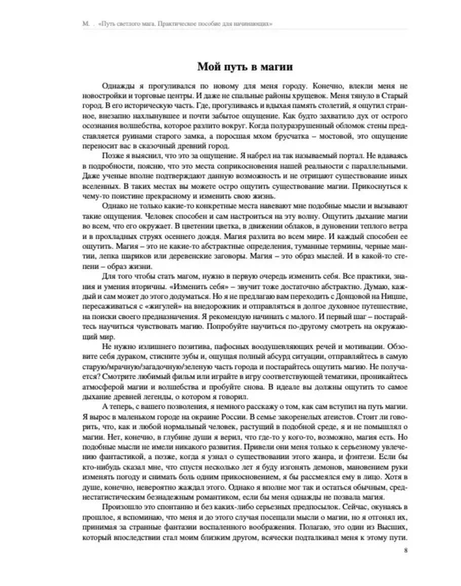 Я изложу основы магии, опишу принципы, расскажу об опасностях и поделюсь небольшими секретами. Которые помогут вступить на путь магии, избежав массы опасностей, которые подстерегают начинающих магов. Начиная с продажи души, заканчивая потерей личности.