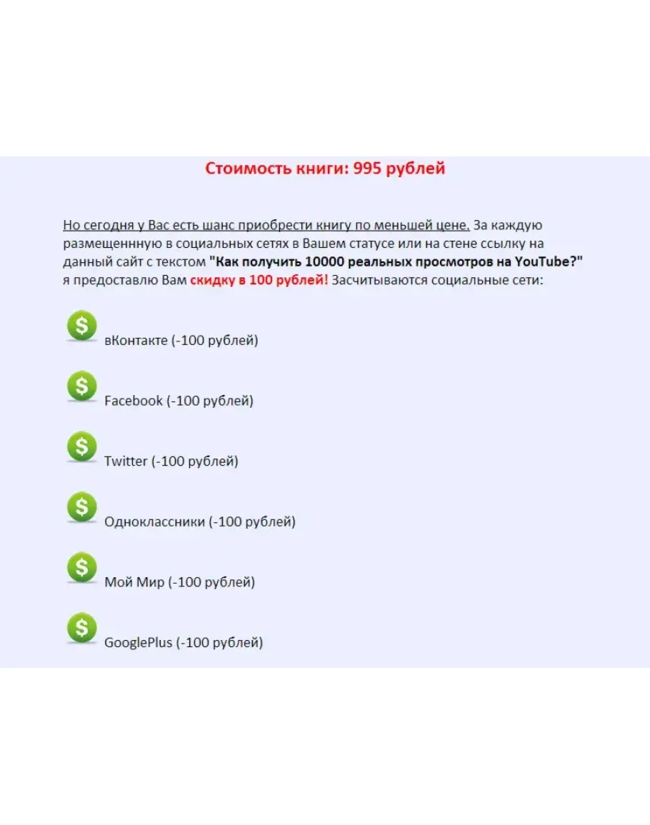 Книга "Как получить 10 000 просмотров на YouTube"+ Права Перепродажи и Личной Марки + комплект продающей графики. Подробнее http://infomasteru.ru/10000-prosmotrov-na-youtube-prava/ + Бонус: Мой авторский мини-курс «Переделка инфопродуктов и электронных книг с правами личной марки под себя»