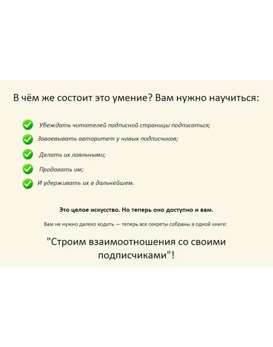 Книга "Строим взаимоотношения со своими подписчиками" + Права Перепродажи и Личной Марки + комплект продающей графики + Бонус: Мой авторский мини-курс «Переделка инфопродуктов и электронных книг с правами личной марки под себя»