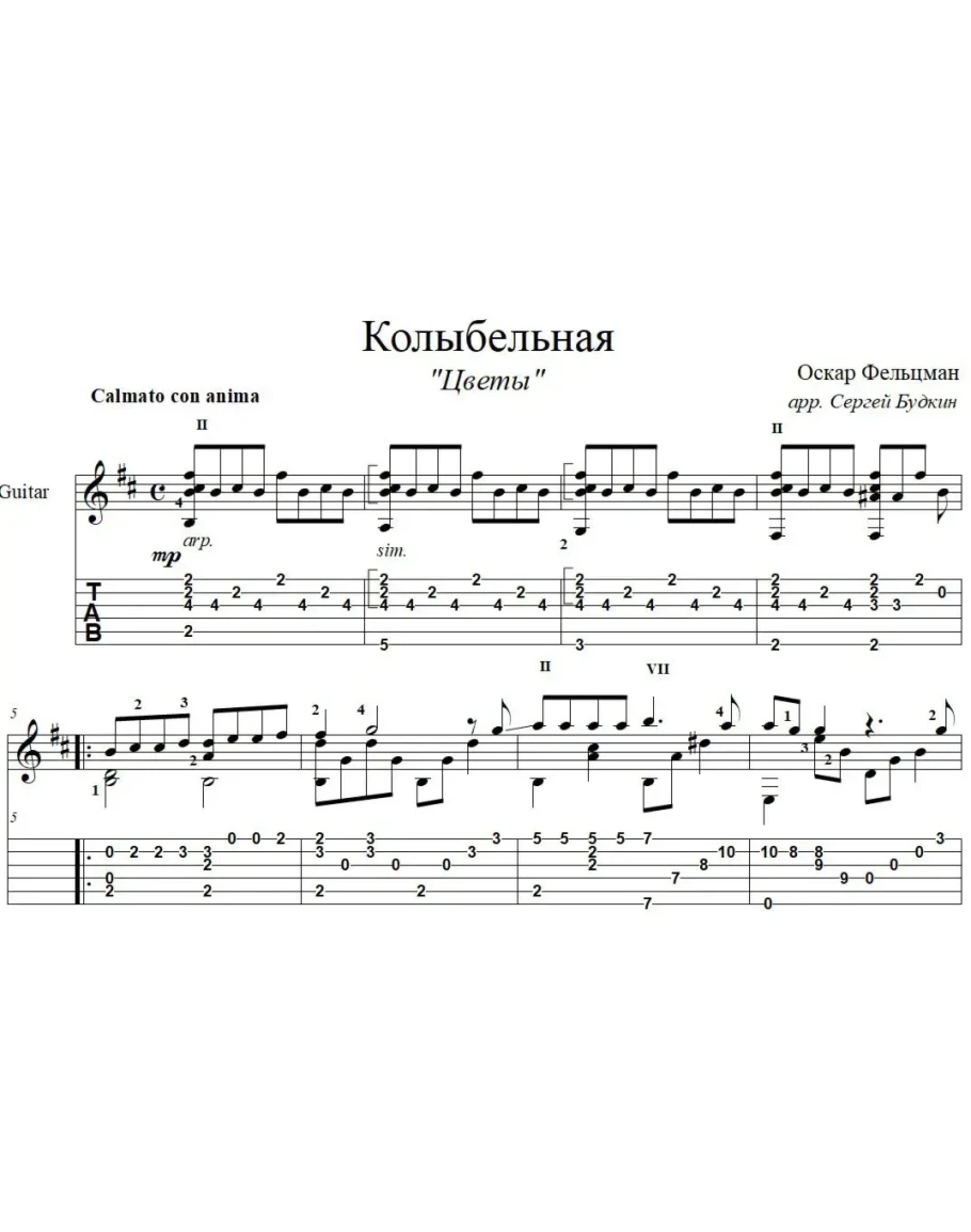 Аранжировка для гитары песни Оскара Фельцмана "Колыбельная" из репертуара группы "Цветы".