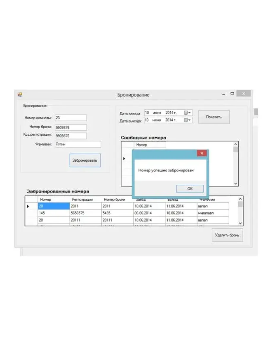 5) Заселение клиента в выбранный номер;