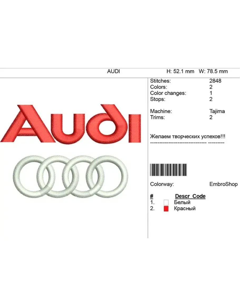Компьютерная вышивка-логотип "AUDI