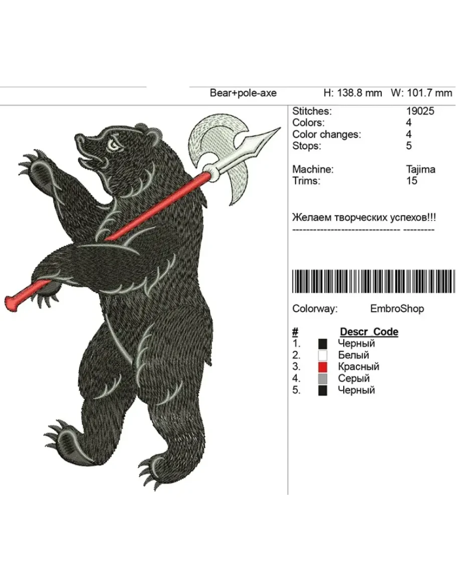 Компьютерная вышивка Медведь с секирой