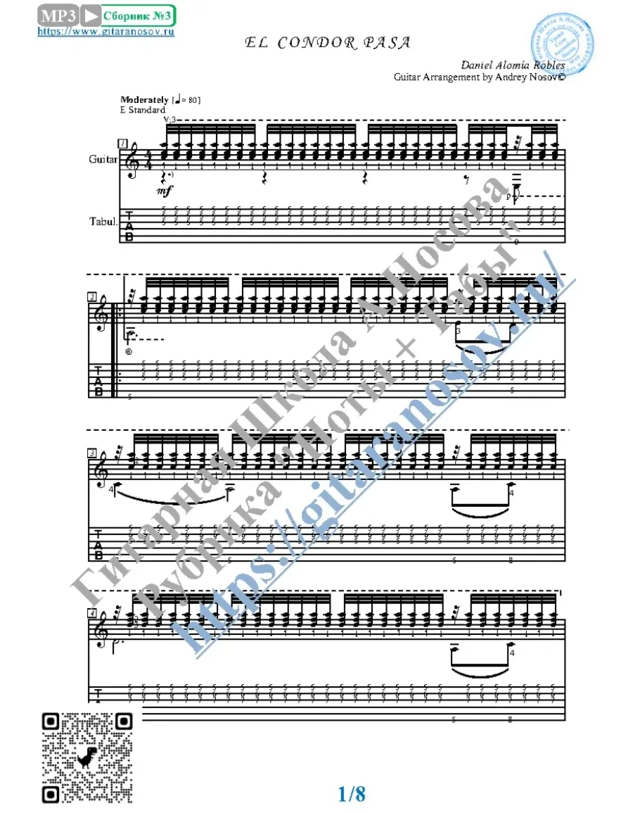 Кликните "Подробнее" для получения дополнительной информации Вашему вниманию предлагается композиция "El Condor Pasa (D.A.Robles)", предназначенная для исполнения на 6-ти струнной гитаре СОЛО. Запись выполнена нотами, сопровождена подробнейшей аппликатурой и продублирована табулатурой. И ещё…