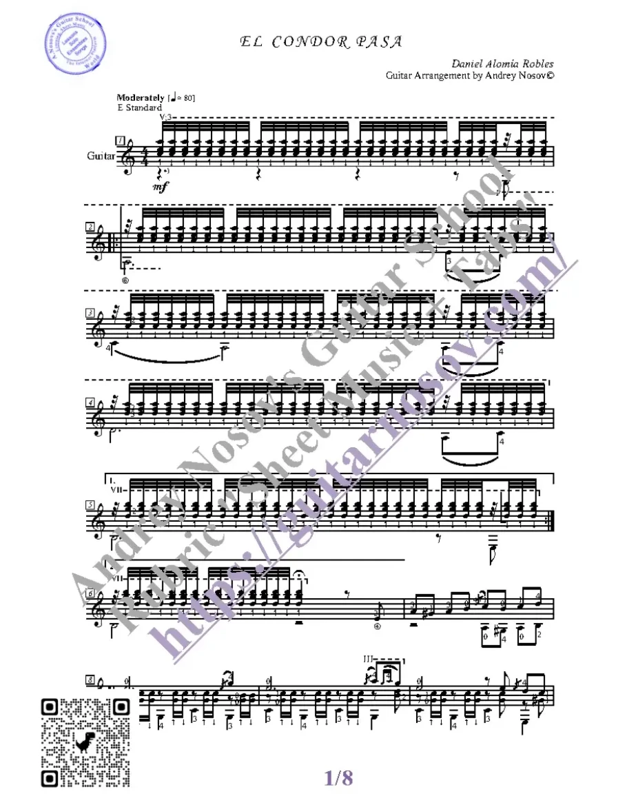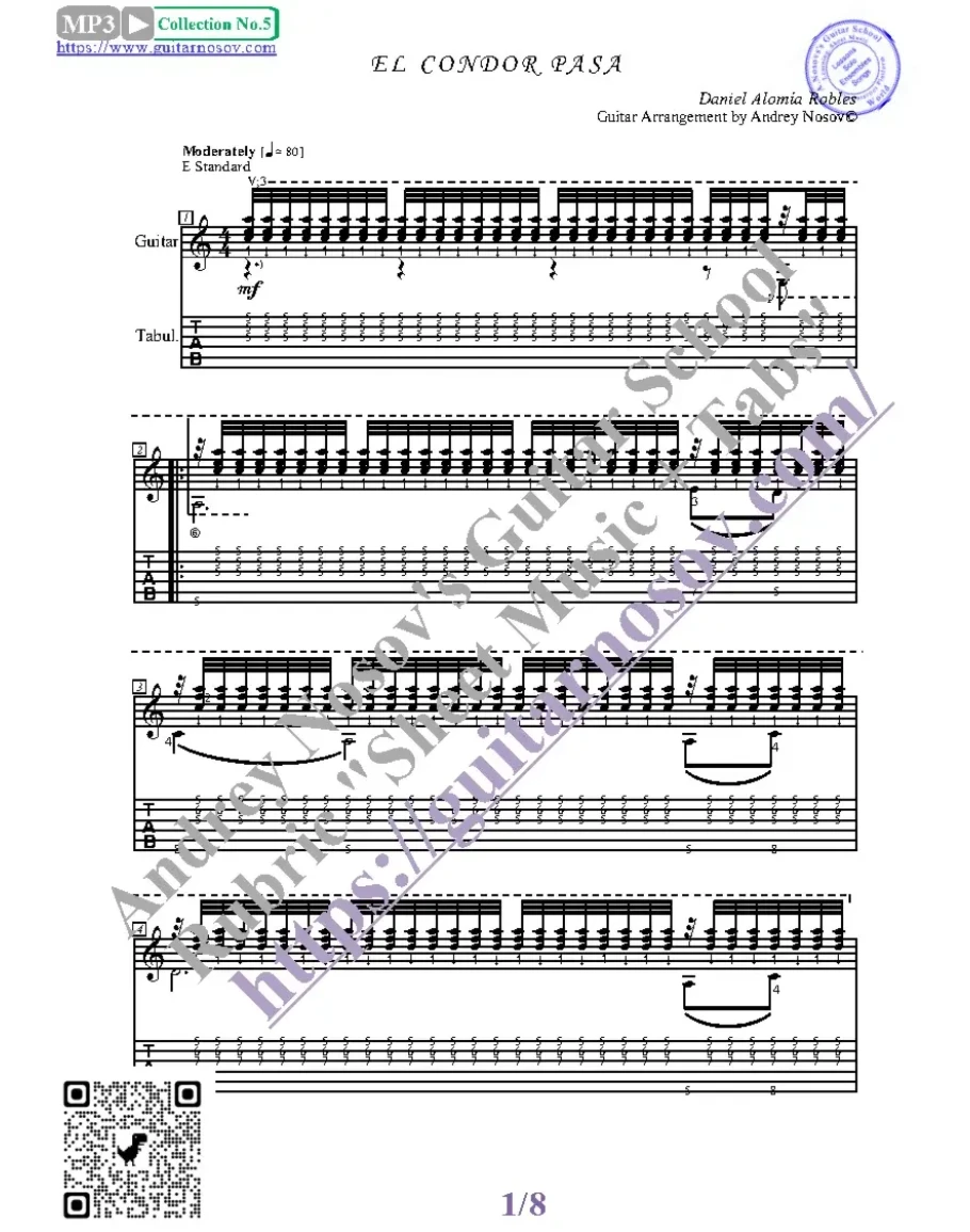 Кликните "Подробнее" для получения дополнительной информацииВашему вниманию предлагается композиция "El Condor Pasa (D.A.Robles)", предназначенная для исполнения на 6-ти струнной гитаре СОЛО. Запись выполнена нотами, сопровождена подробнейшей аппликатурой и продублирована табулатурой.