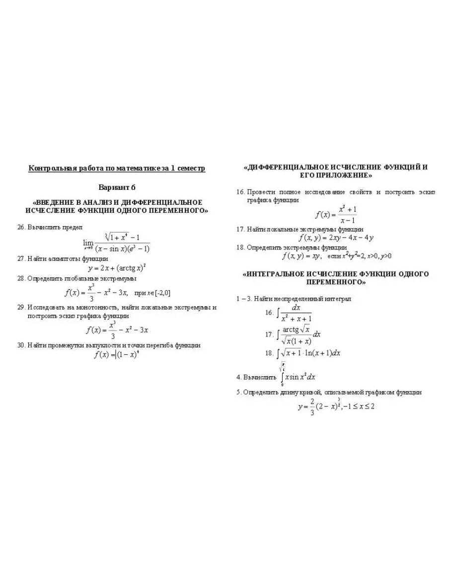 контрольная работа по математическому анализу за 1 семестр для Тюменского государственного университета