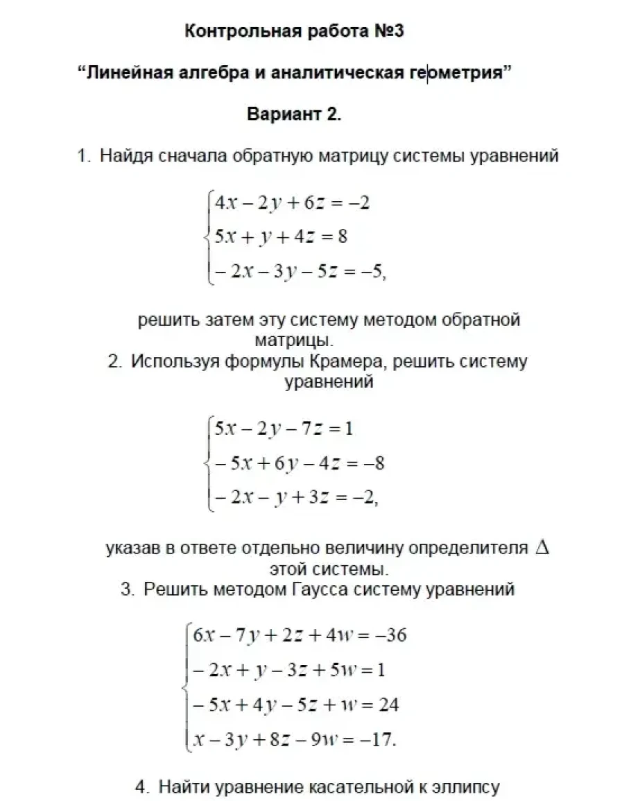 «Линейная алгебра и аналитическая геометрия»