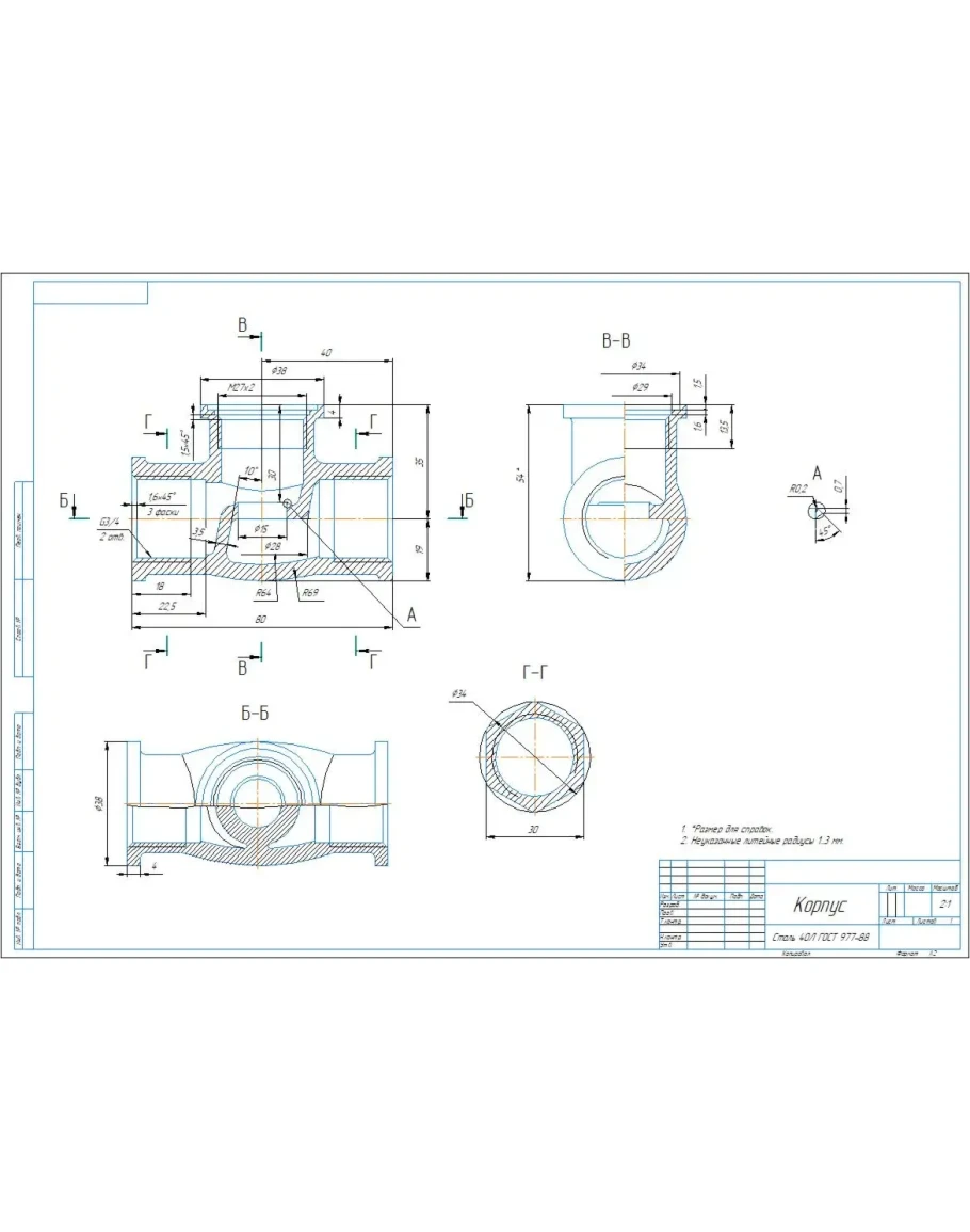 Рабочий чертеж детали корпус клапана G3/4 в программе компас 3D