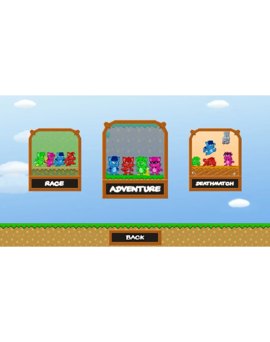 Более 100 уровней можно пройти в совместном режиме для 1-4 игроков на одном экране или онлайн. Есть три разных режима игры (гонка, приключения и смертельный бой), особые локации, которые без друзей не пройти, а также приятные сюрпризы и секреты.