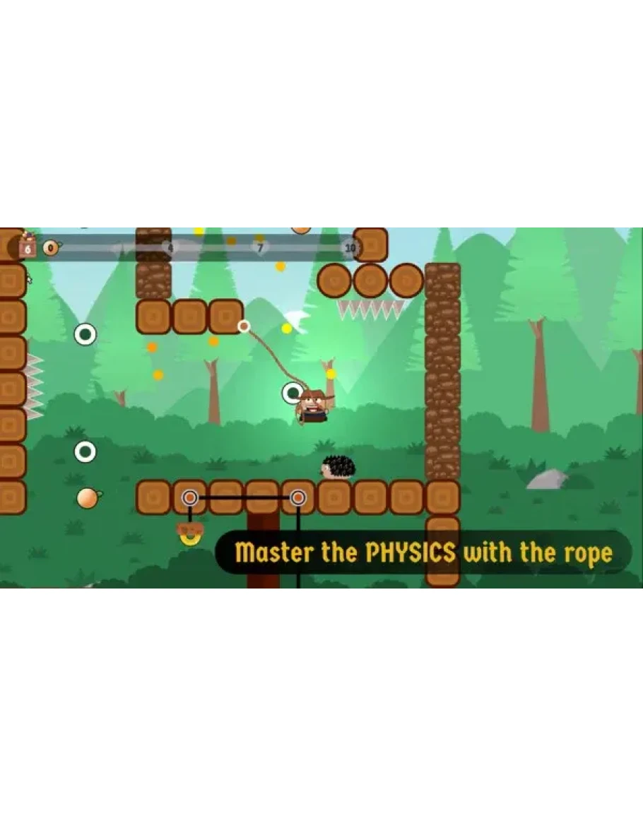 2D PLATFORMER where you DON'T walk or jump. Become strong! MASTER PHYSICS with the rope, COLLECT all the fruits to PROGRESS, gain LIVES and OPEN NEW PATHS. 💪 SURVIVE all the dangers of the journey and SAVE THE BOY!