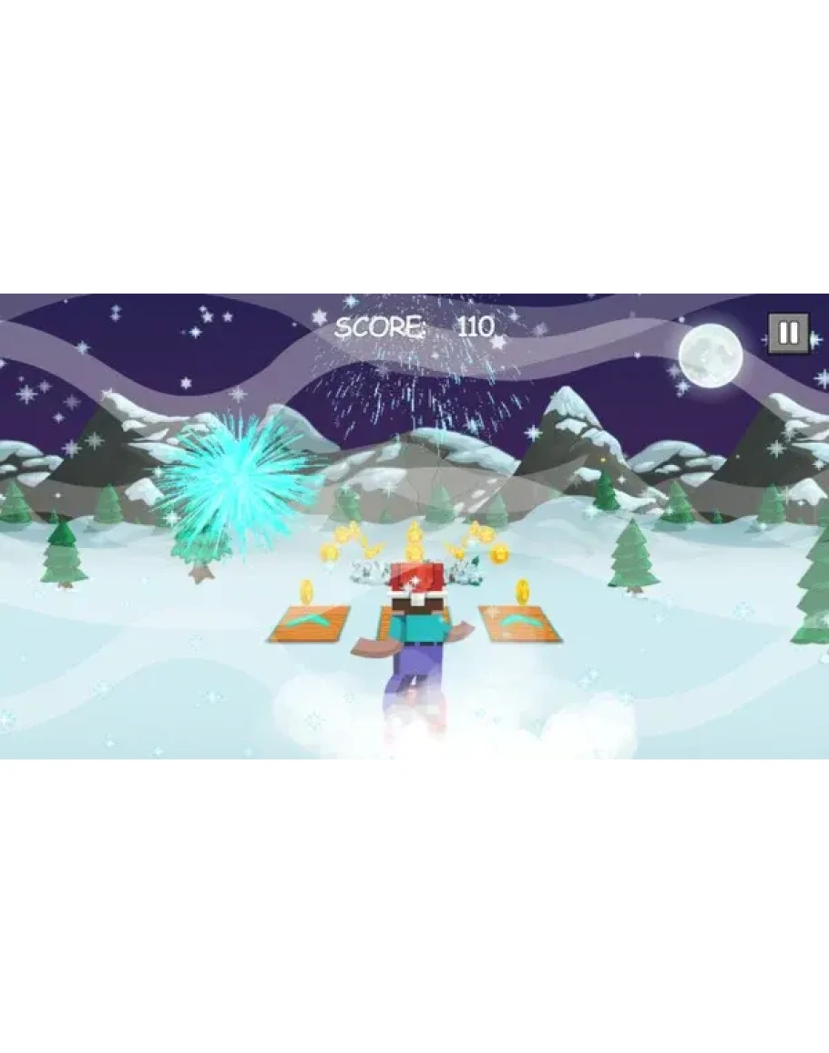 Beautiful Christmas trees, sharp saws, fallen trees and snow piles act as obstacles. You should be careful, the Christmas trees grow quite close to each other, and the saws move very quickly. Jump over snow piles and fallen trees with the help of trampolines. Collect coins, they will be useful for you to buy cool costumes for your hero!
