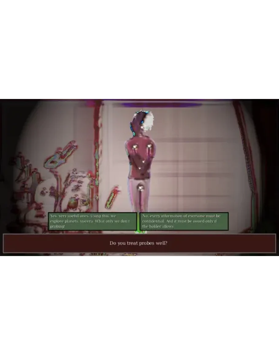 Выбирай разные варианты ответов на диалоги и смотри как меняется описание событий. Здесь 4 концовки, каждая из которых зависит от твоего ответа.