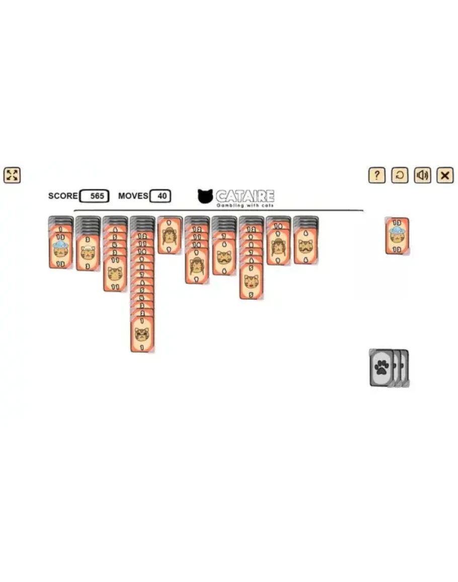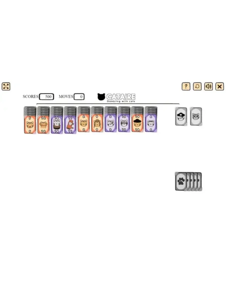 Кошка + пасьянс = CATAIRE (легальная азартная игра с кошками). Мурлыкающая графика, Вы можете играть в CATAIRE с мышкой, звуки мяуканья и мурлыкающая музыка. Кошки купили бы CATAIRE (если бы они могли играть). Купи меня!