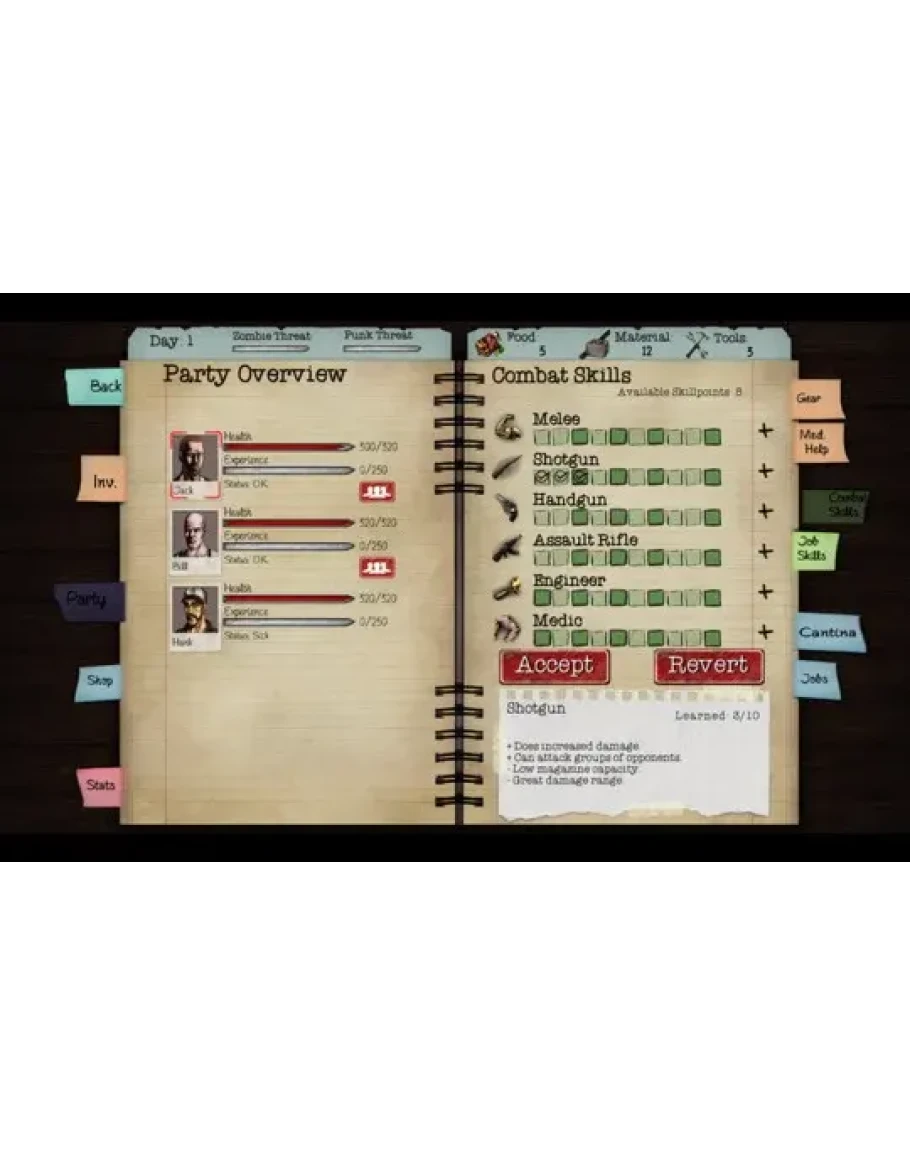 Переживите зомби-апокалипсис с пошаговыми боями и необратимой смертью! Командуйте выжившими, отправляйтесь в опасные вылазки, стройте отношения, создавайте экипировку, принимайте трудные решения, которые изменят сюжет, защищайте лагерь от толп оживших мертвецов и прочувствуйте на себе тяготы жанра rogue-lite. Это инновационная ролевая инди-игра на выживание!