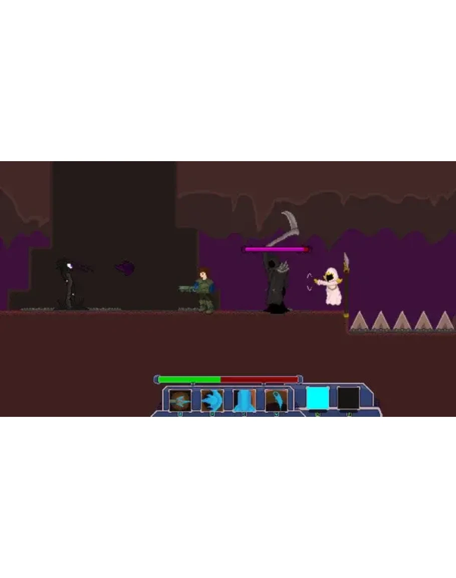 Dimension Shifter is a pixel art platform shooter style desktop video game developed by Eyexapp Play using the Game Maker game engine. You play the game as one of three soldiers who find themselves in Qesina. Attacking the facility by overcoming challenges with new friends you meet during your adventure, You must solve the mystery of "The Hybrid", which poses a threat to both Earth and Qesina, and stop it.