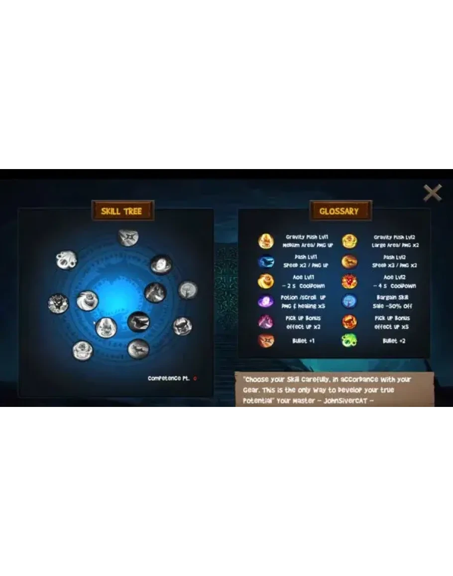 - Improve your competence or buy new one when Lvl UP;