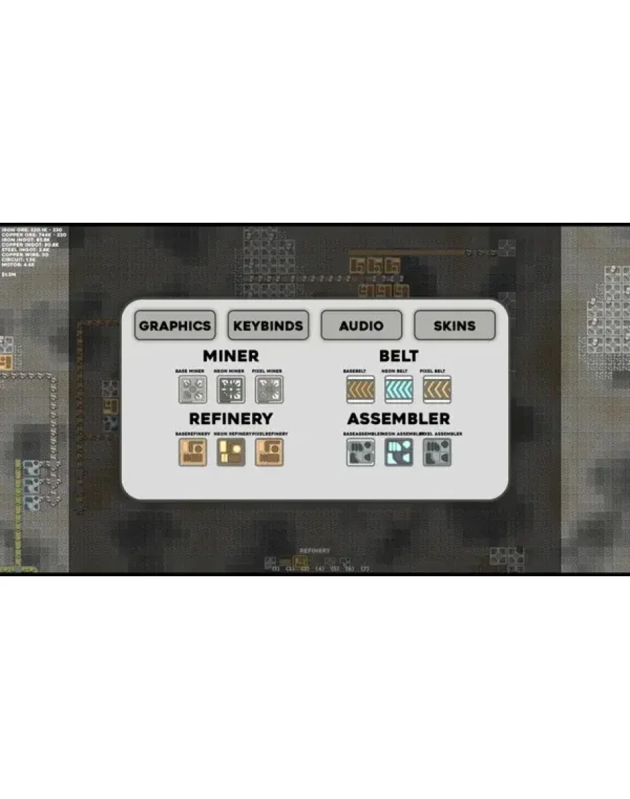 Idle Industries is a project developed solely by me(Max Tarabbia). Its a factory building sim with several idle game mechanics including a prestige system and offline time resimulation. Start by using miners to get a good base of resources. From there the tutorial will guide you through using belts to transport resources and refineries. Refined materials will have a higher value and are necessary to construct more advanced buildings. After a few dozen hours you'll begin to approach 1 million credits which will then allow you to prestige and start again but this time resources are twice as valuable!