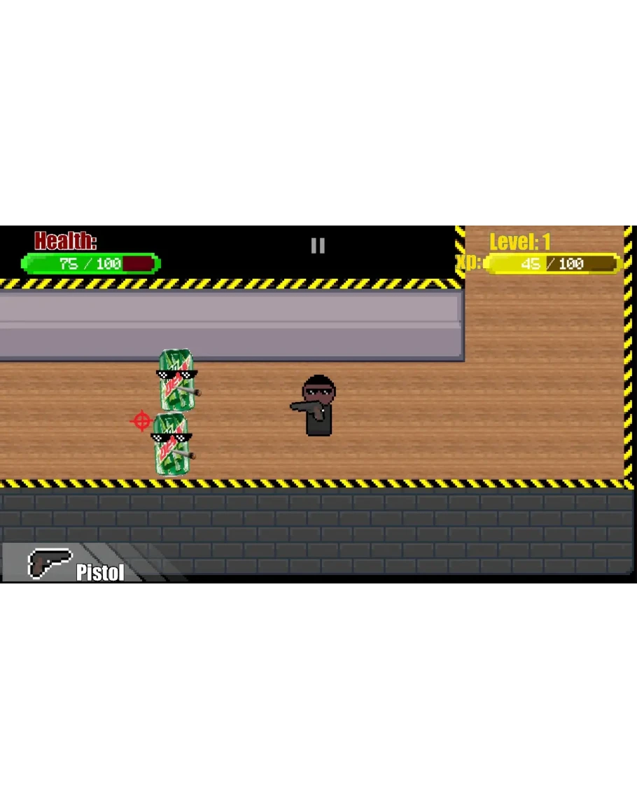 Glad you asked! all this will manifest to your senses like a pixelart top-down shooter game. You will kill a wide variety of enemies, and collect a large assortment of firearms. You'll be tasked with exploring the massive illuminati headquarters and taking out their line of command, and saving the world.png