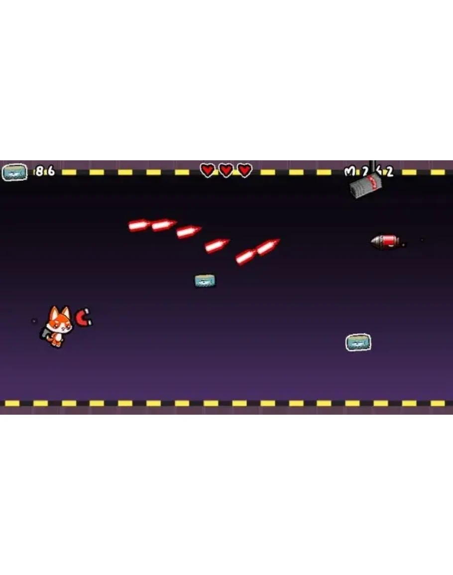 Jetpack George! is a fun and addictive endless runner where George the cat must try to eat all the cans of tuna after a long nap, he's starving. Invade the tuna factory equipped with your jetpack, and avoid missles, guns, homing lasers and platforms as you try to get as far as you can. If you succeed, you can upgrade your character, unlock new abilities such as the magnet, shield and double tuna which will help you get to the very top of the worldwide leaderboard.