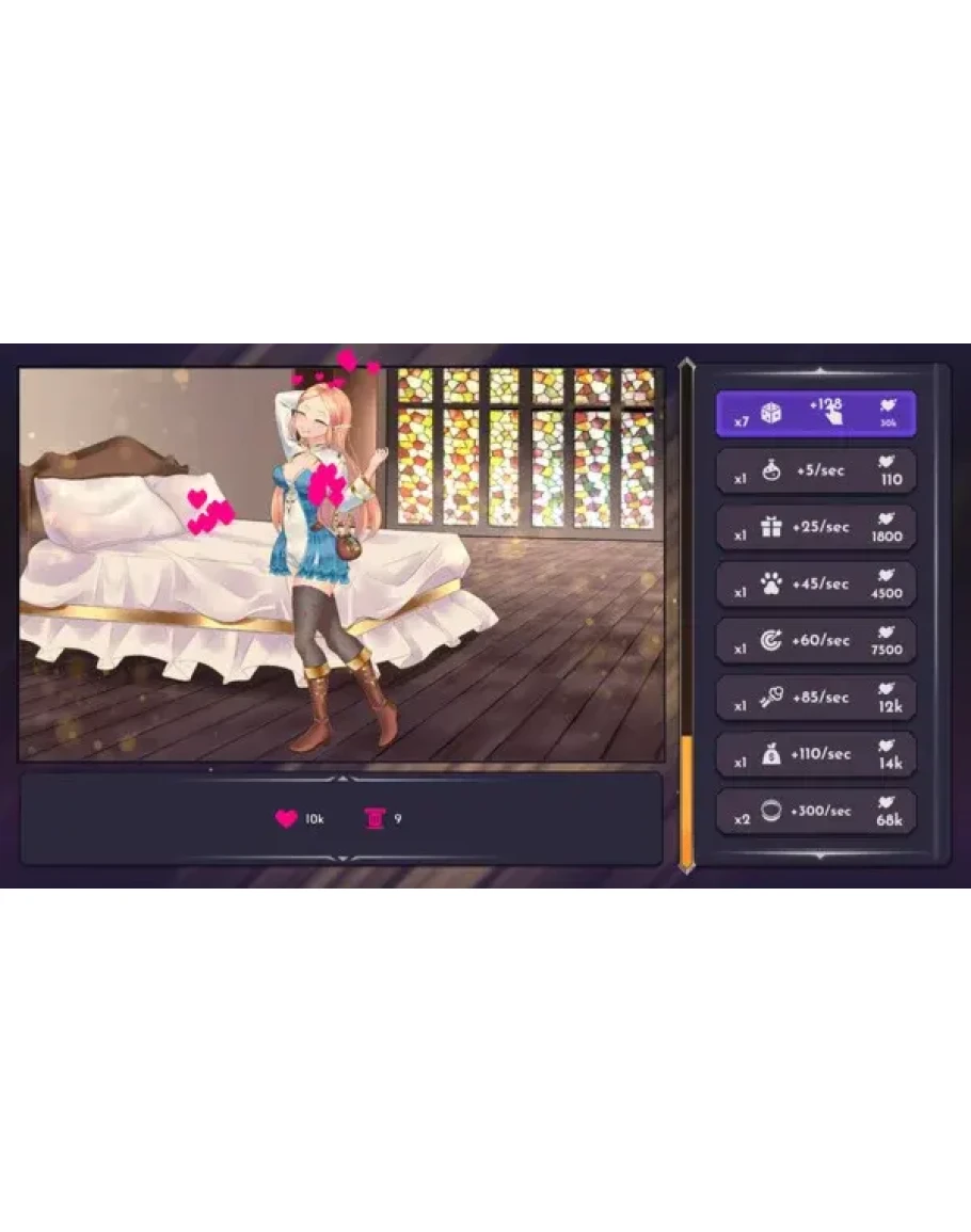 С помощью волшебного клика девушки двигаться для тебя. Клик, клик! Я очень радостный ! Чем чаще кликаешь тем выше растет шкала любви, нраится! Клик клик клик! В этом кликере 10 прекрасно анимированных девушек в различных позах ждут встречи с тобой! Эльфийки, монашки, енот-рабыня, медовый кролик и многие другие ждут тебя! Величайшее достижение казахского геймдева! В эту игру можно играть даже если вам оторвало руки, то есть совсем без них! Порадуй девушку, дай денег или подари кольцо и она будет раздеваться сама, нажимать ничего не надо! Моя радостный!